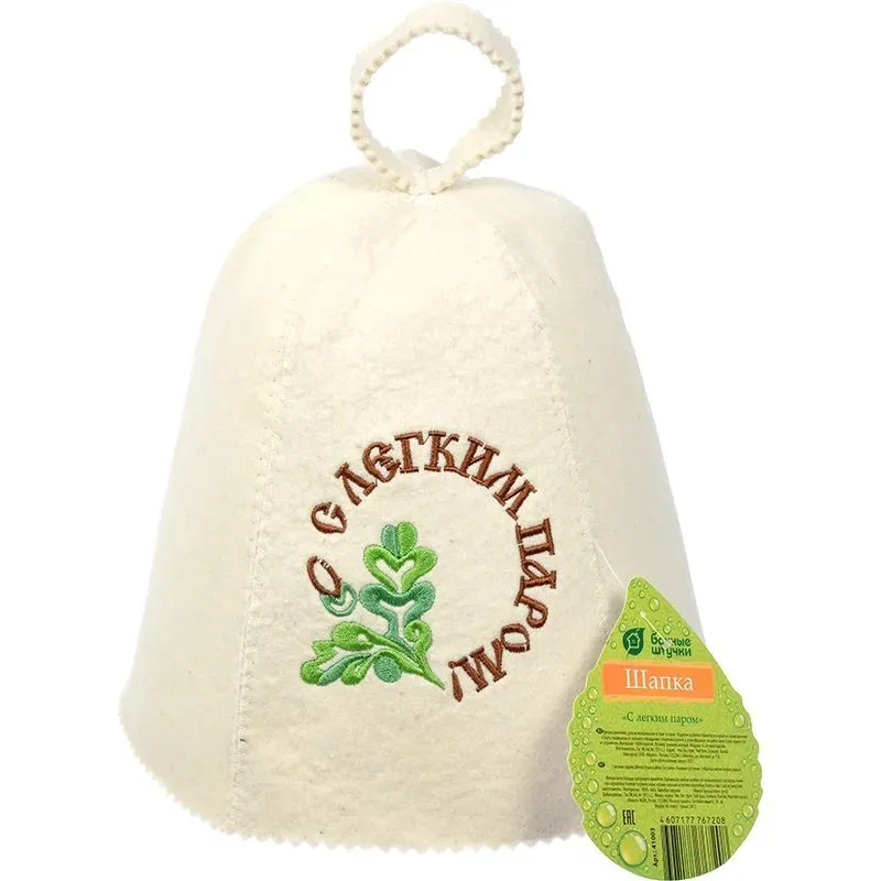 Шапка для бани изготовлена из натурального войлока, который является антибактериальным материалом.