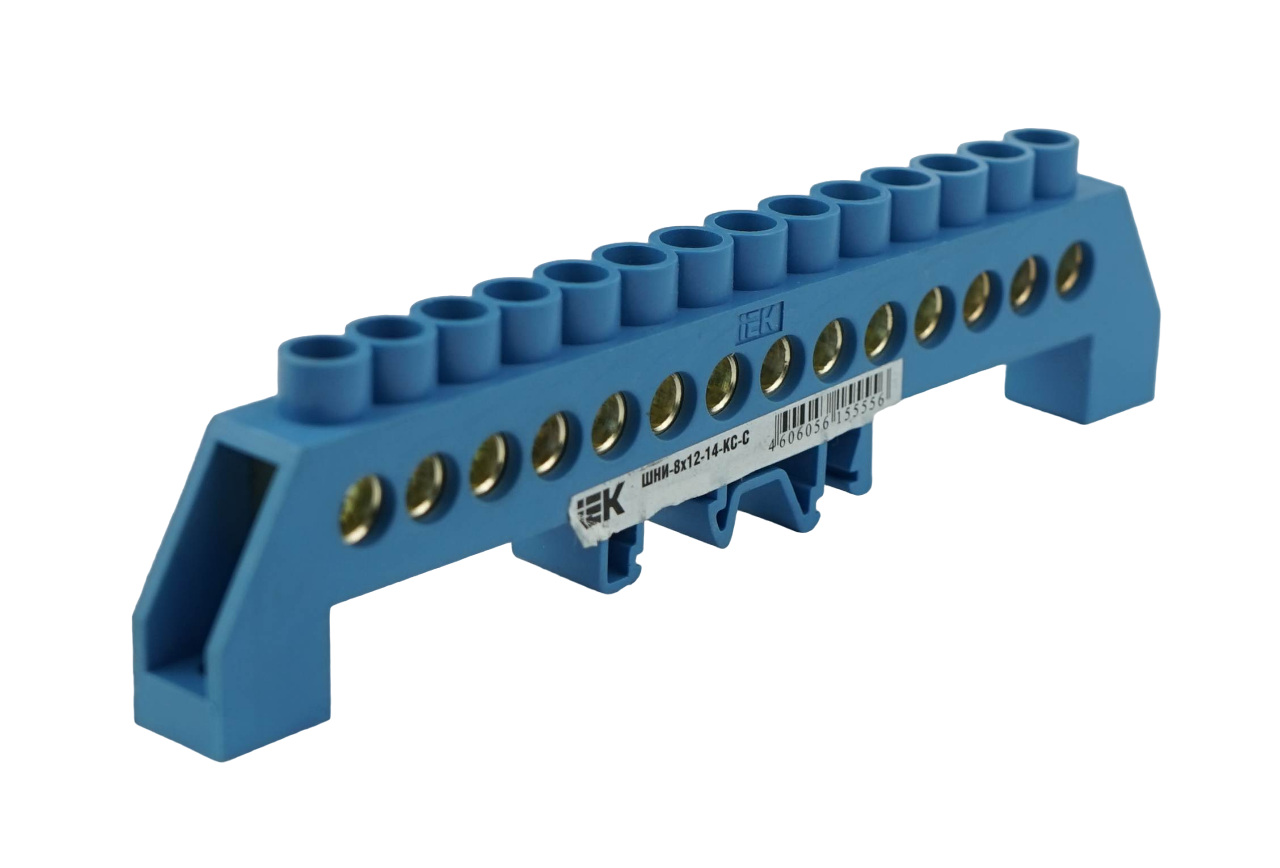 Шина нулевая ШНИ от бренда IEK выполнена из латунной шины, установленной на пластиковый изолятор или в изолятор, изготовленный из самозатухающего пластика.