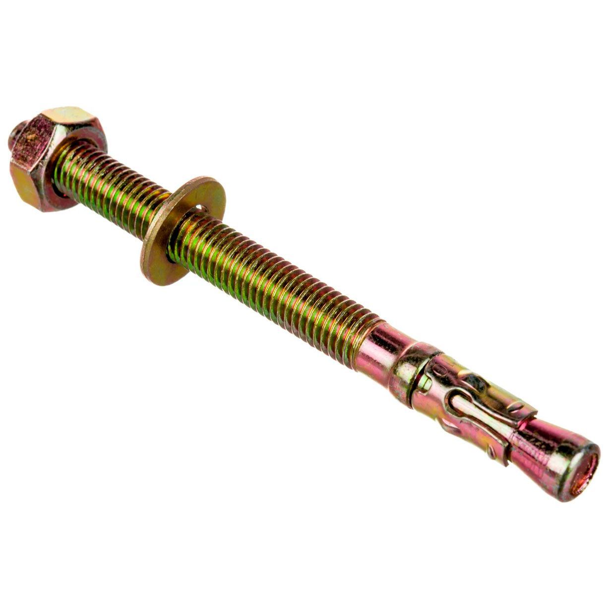 Анкер Клиновой.Анкер забивается молотком в предварительно просверленное отверстие в прикрепляемом материале и бетоне, далее затягивается гайкой.