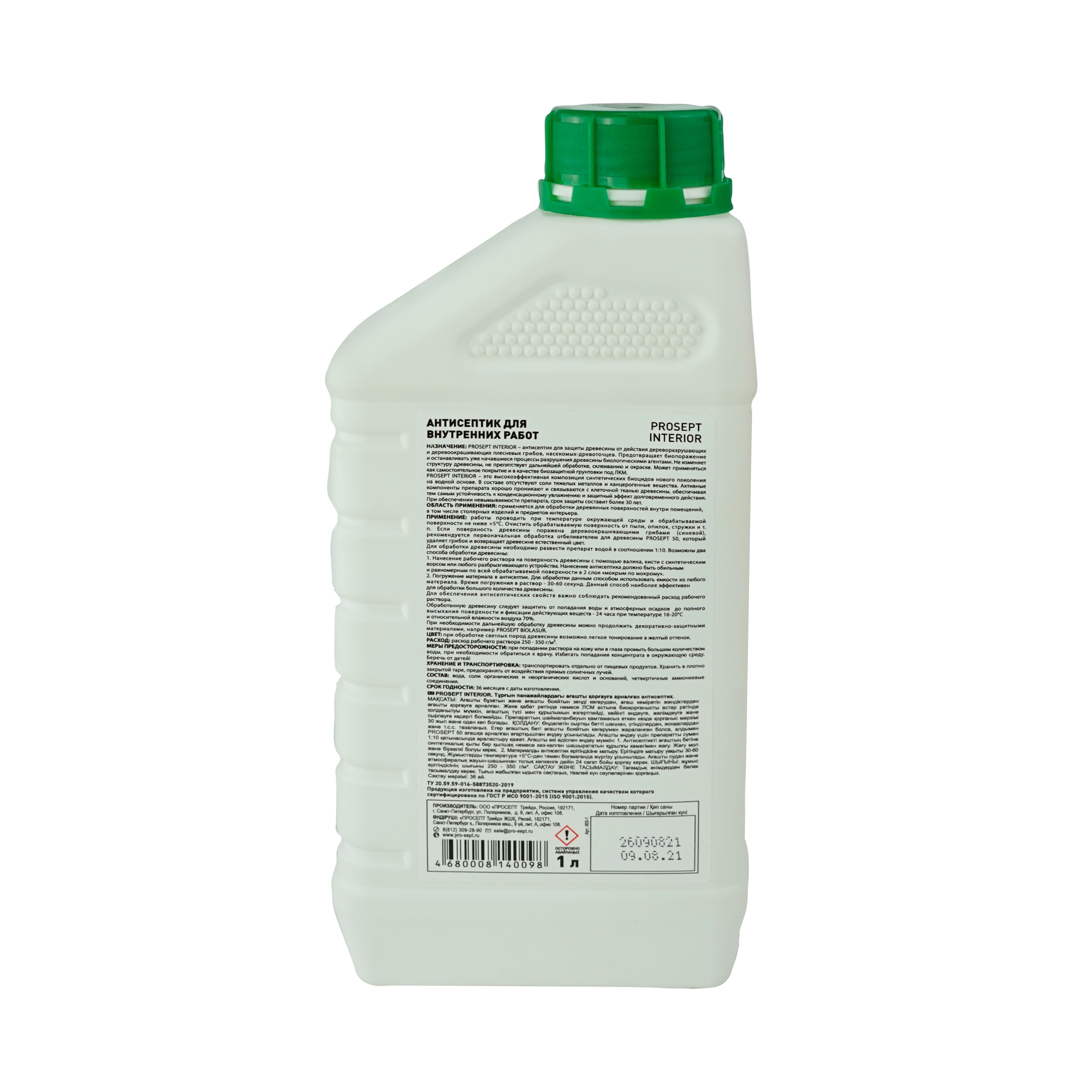 Антисептик PROSEPT INTERIOR для внутренних работ предназначен для защиты древесины от действия дереворазрушающих и деревоокрашивающих плесневых грибов, насекомых-древоточцев.