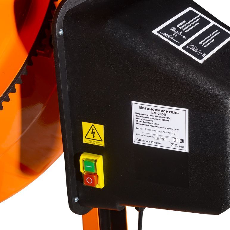 - Яркий цвет бетономешалки соответствует правилам СНИПа, которые предписывают окрашивание потенциально опасной техники в яркие цвета.