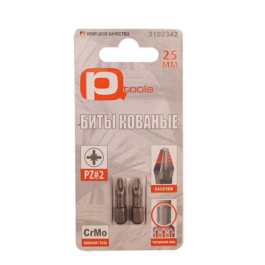 Биты сталь S2, кованые, торсионые, магнит, РZ 2х25 PQTools изготовлены из высокопрочной стали S2, которая обеспечивает высокие показатели износоустойчивости и долговечности рабочей части. Магнитный шлиц облегчает работу с метизами. Тип хвостовика С 1/4".