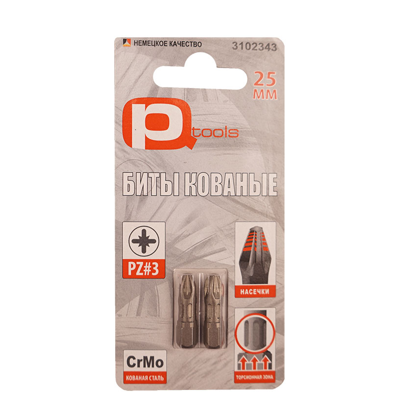 Биты сталь S2, кованые, торсионые, магнит, РZ 3х25 PQTools изготовлены из высокопрочной стали S2, которая обеспечивает высокие показатели износоустойчивости и долговечности рабочей части. Магнитный шлиц облегчает работу с метизами.