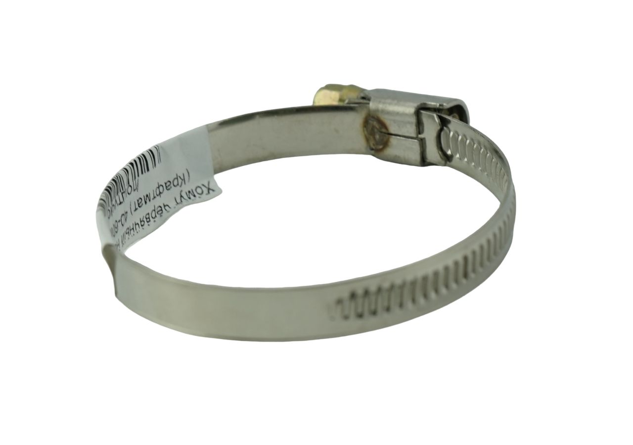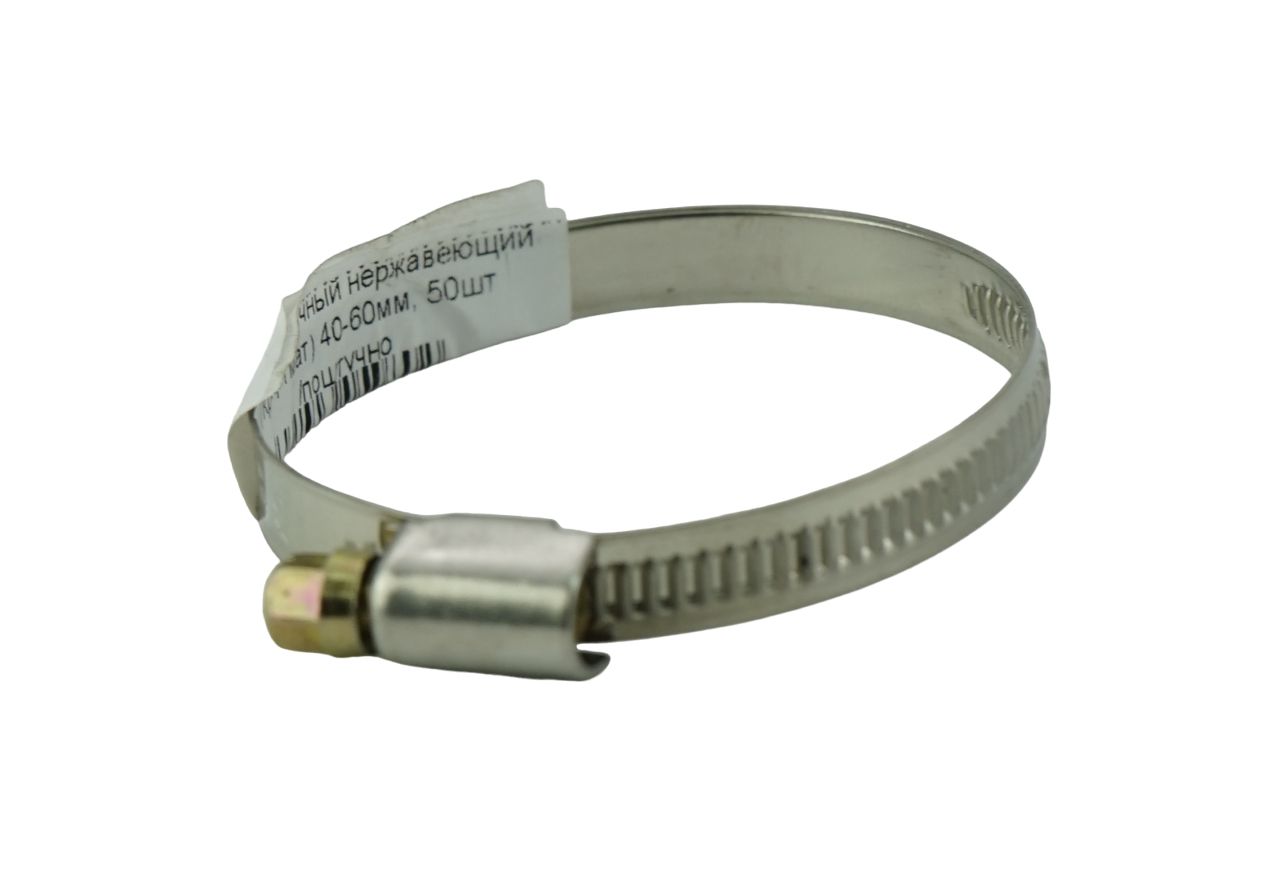 Хомут червячный нержавеющий (Крафтмат) 40-60мм - крепежный элемент, применяемый для соединения труб, патрубков и шлангов. Состоит из винта, стальной нержавеющей ленты с рифленой поверхностью и замкового механизма червячного типа, который обеспечивает нужный интервал и угол резьбы соединения.