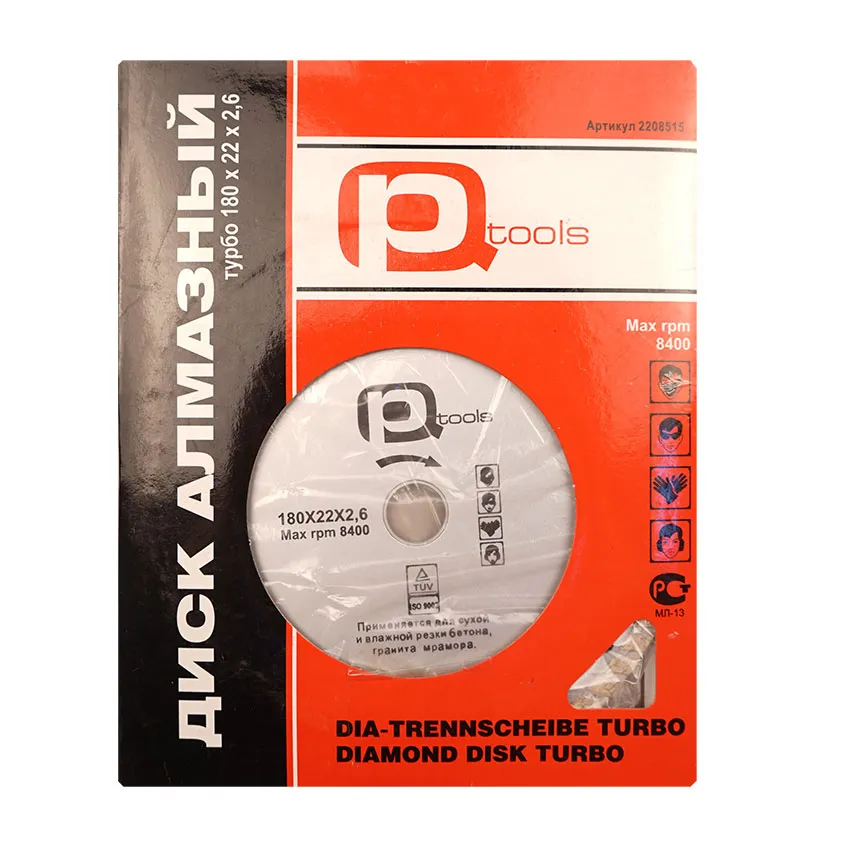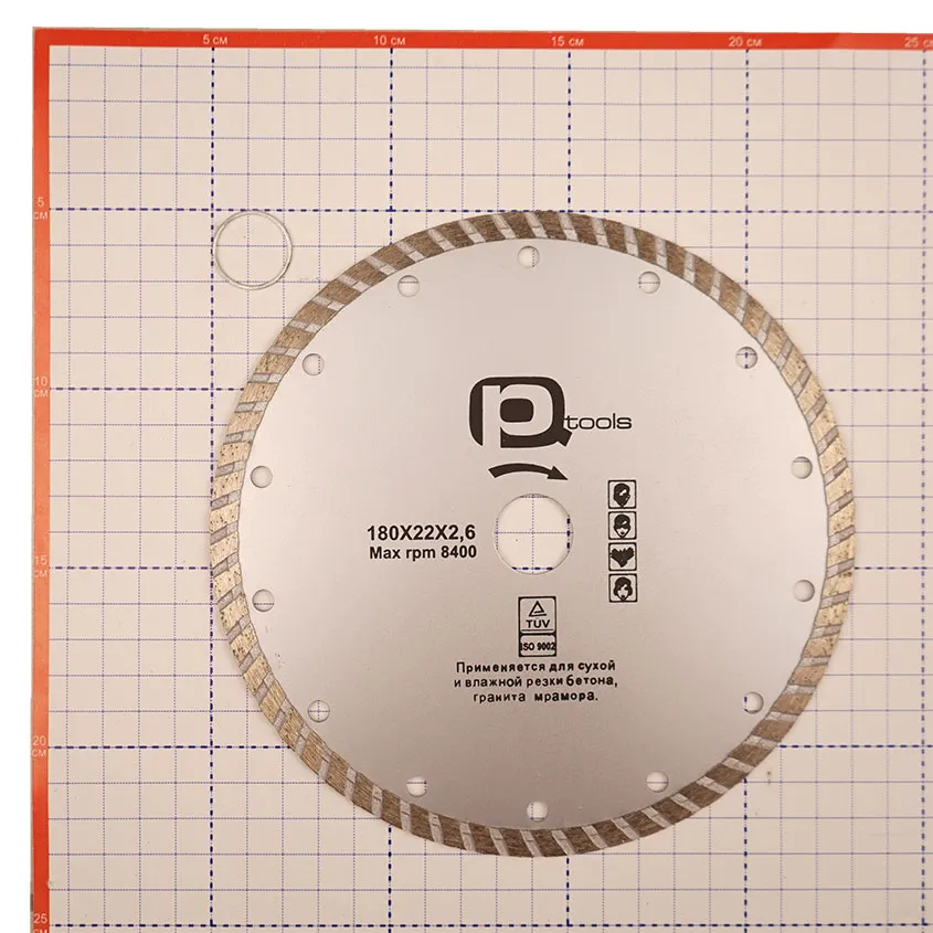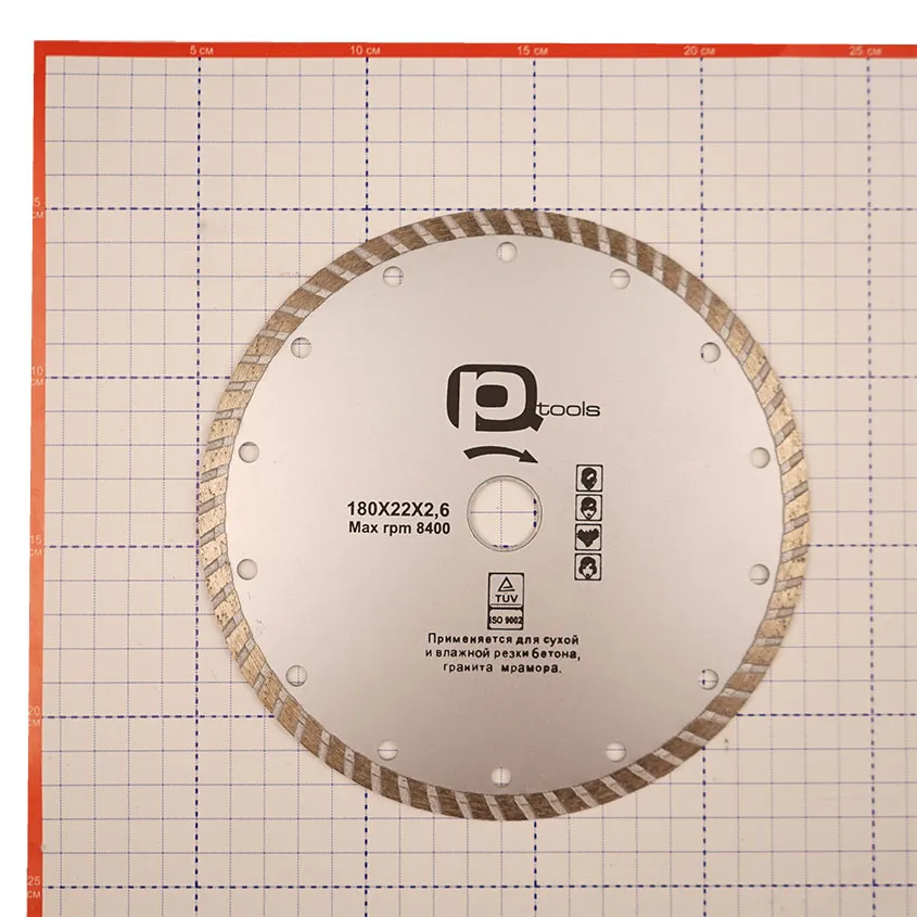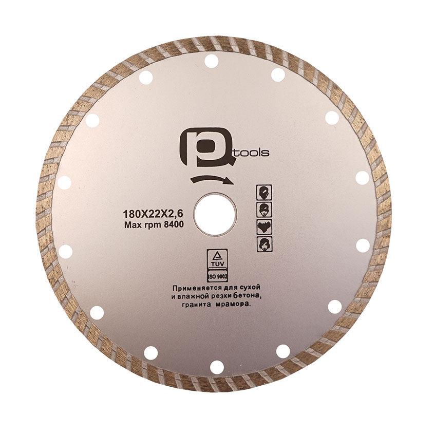Круг отрезной алмазный (PQTools) турбо, 180х2,6х22мм - расходный сменный элемент для УШМ.