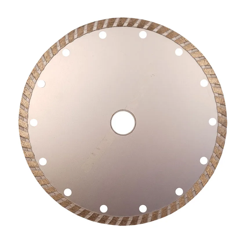 Режущий алмазосодержащий слой, изготовленный методом горячего спекания под высоким давлением надежно закреплен к корпусу диска, имеет продолжительный срок службы. Отвод тепла происходит за счет специального профиля режущей кромки диска, выполненной в виде турбины.