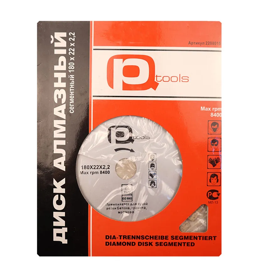 Круг отрезной алмазный (PQTools) сегментный, 180х2,2х22мм - расходный сменный элемент для УШМ.