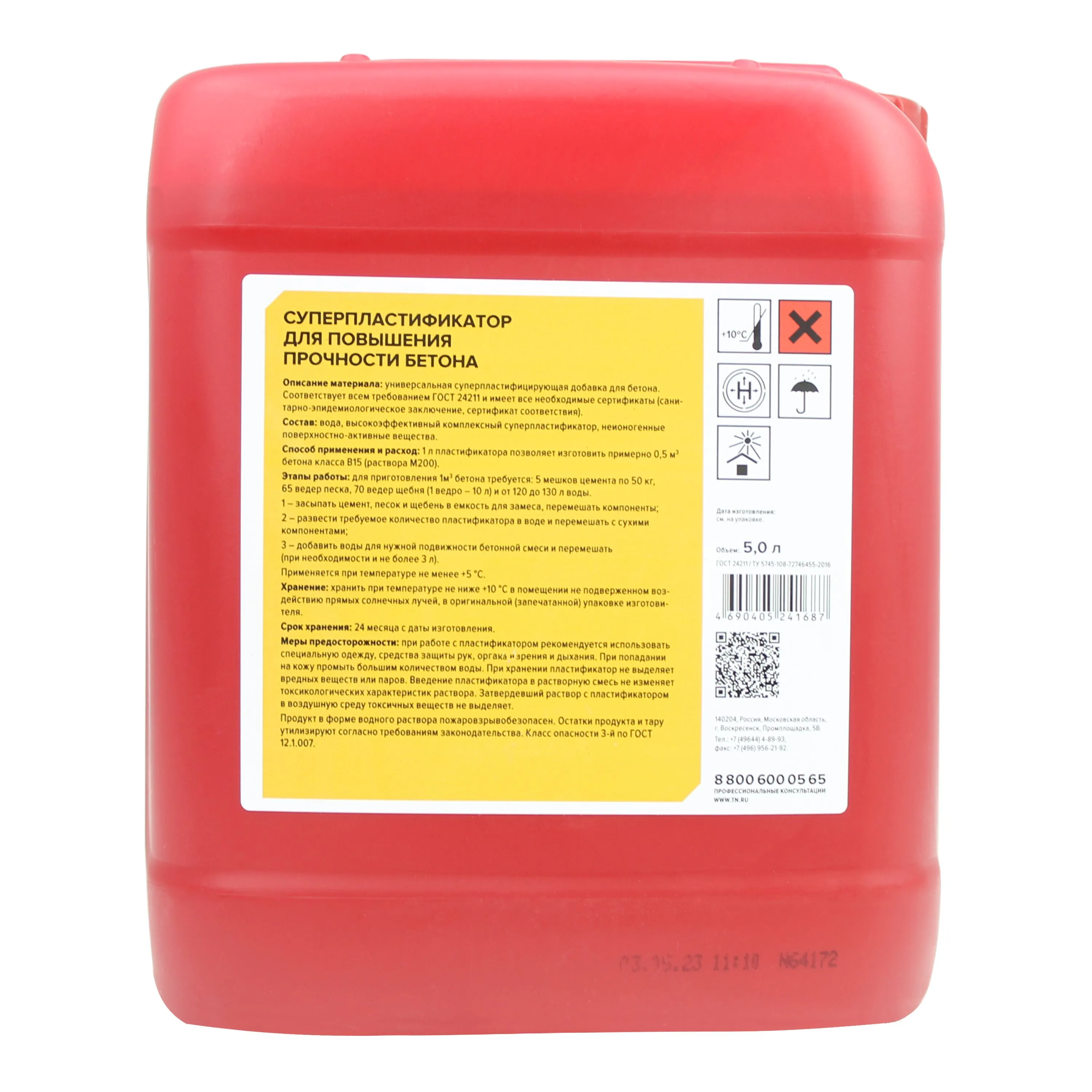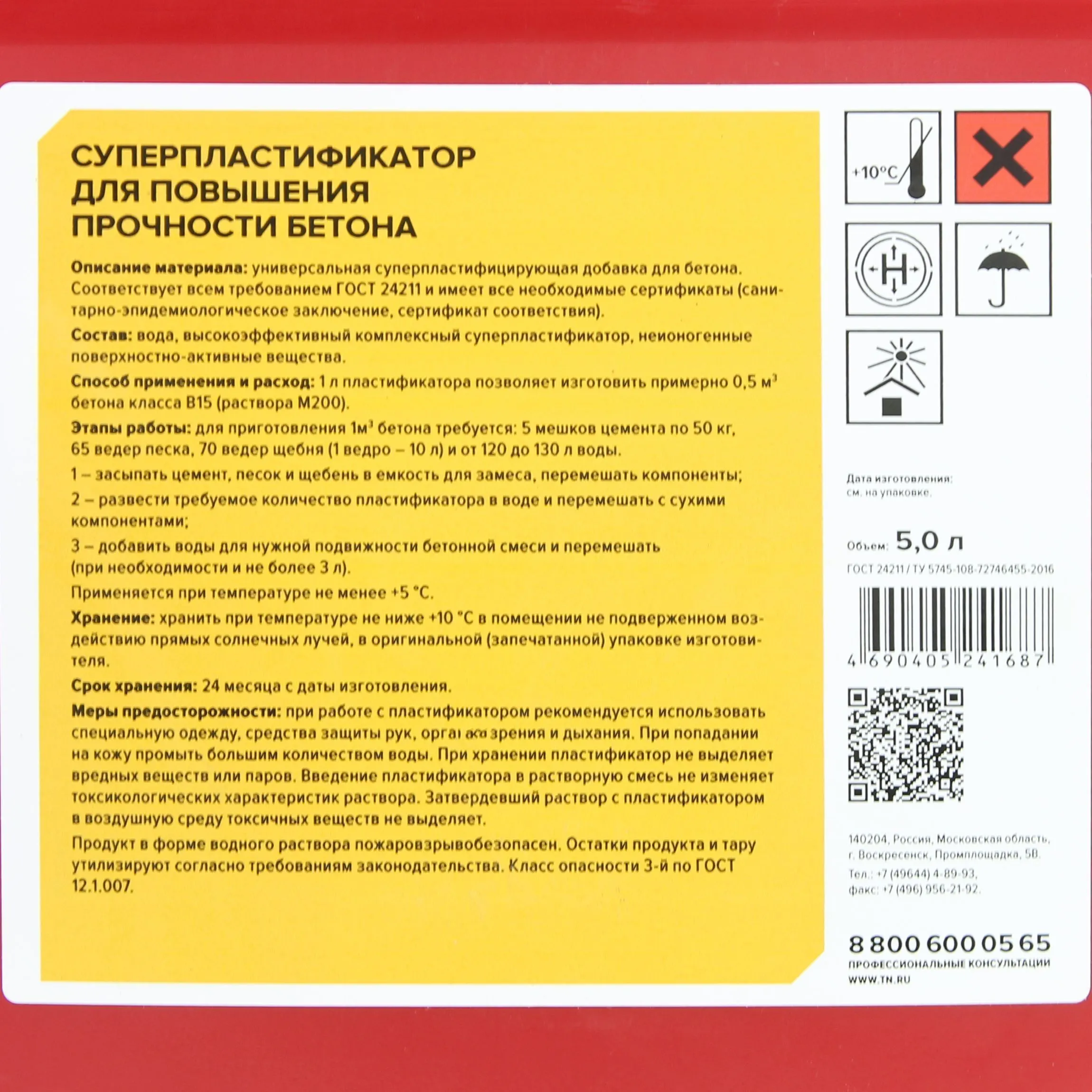 Пластифицирующая добавка ТЕХНОНИКОЛЬ для бетонов и строительных растворов, повышающая долговечность конструкции, ускоряющая набор прочности бетона, повышающая морозостойкость и водонепроницаемость бетонных изделий, состоящая из водного раствора высокоэффективных комплексных суперпластификаторов и неионогенных поверхностноактивных веществ.