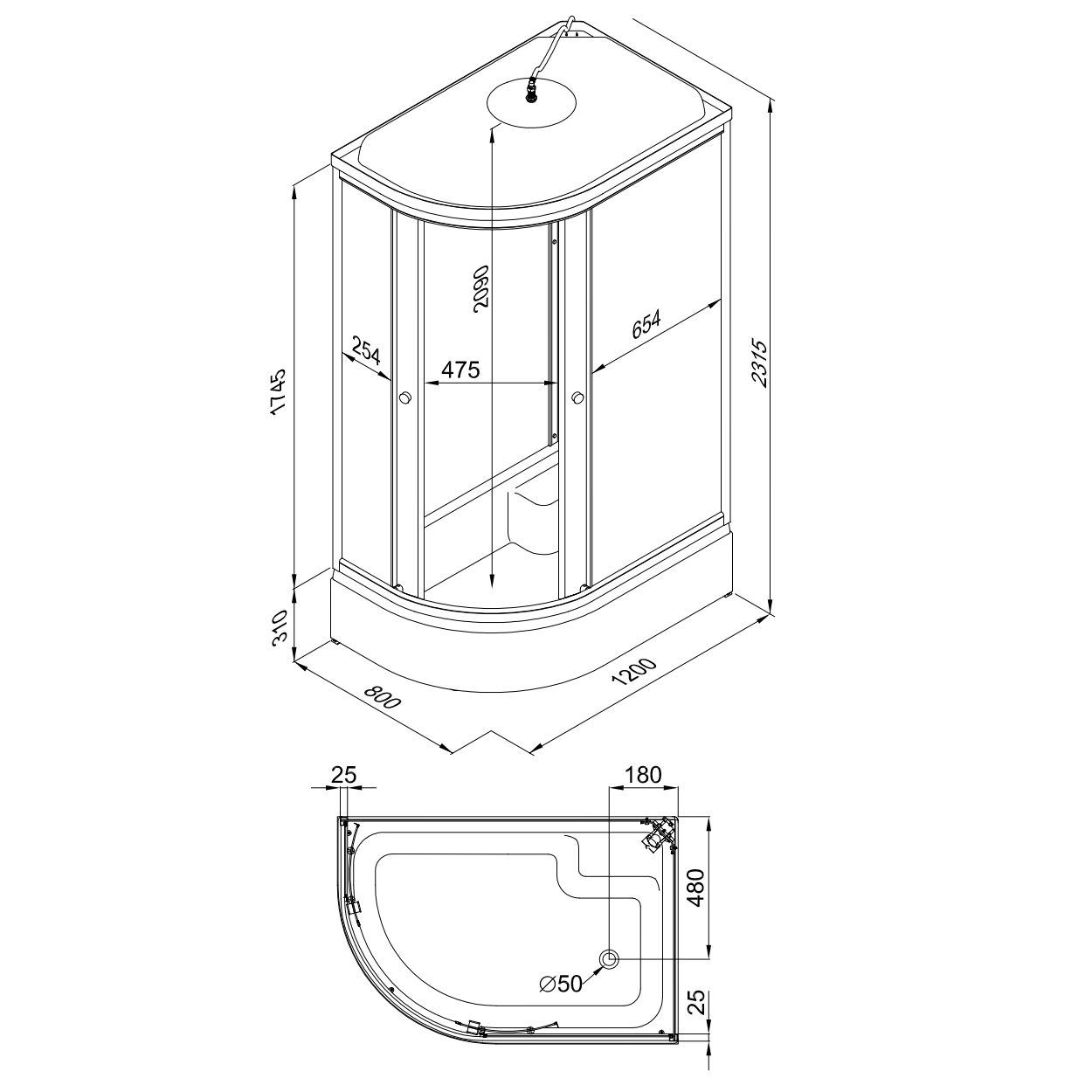 - Акриловая душевая кабина для бытового использования;