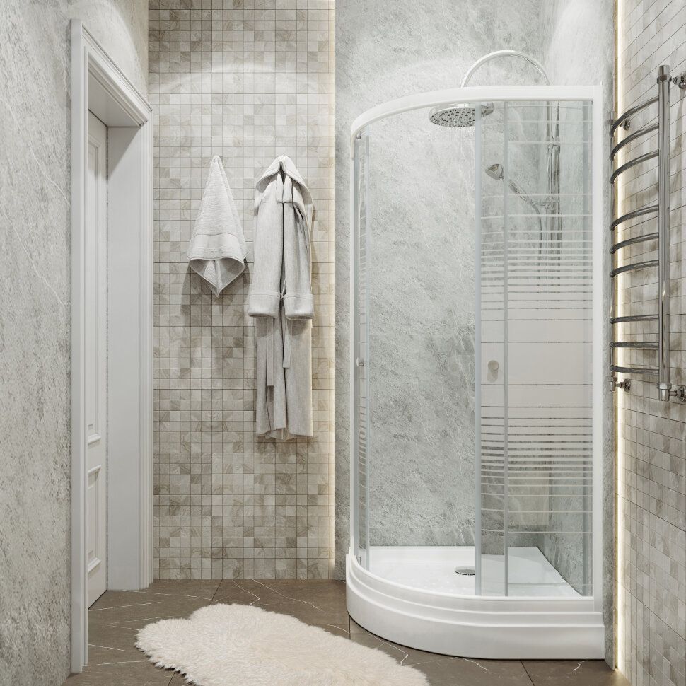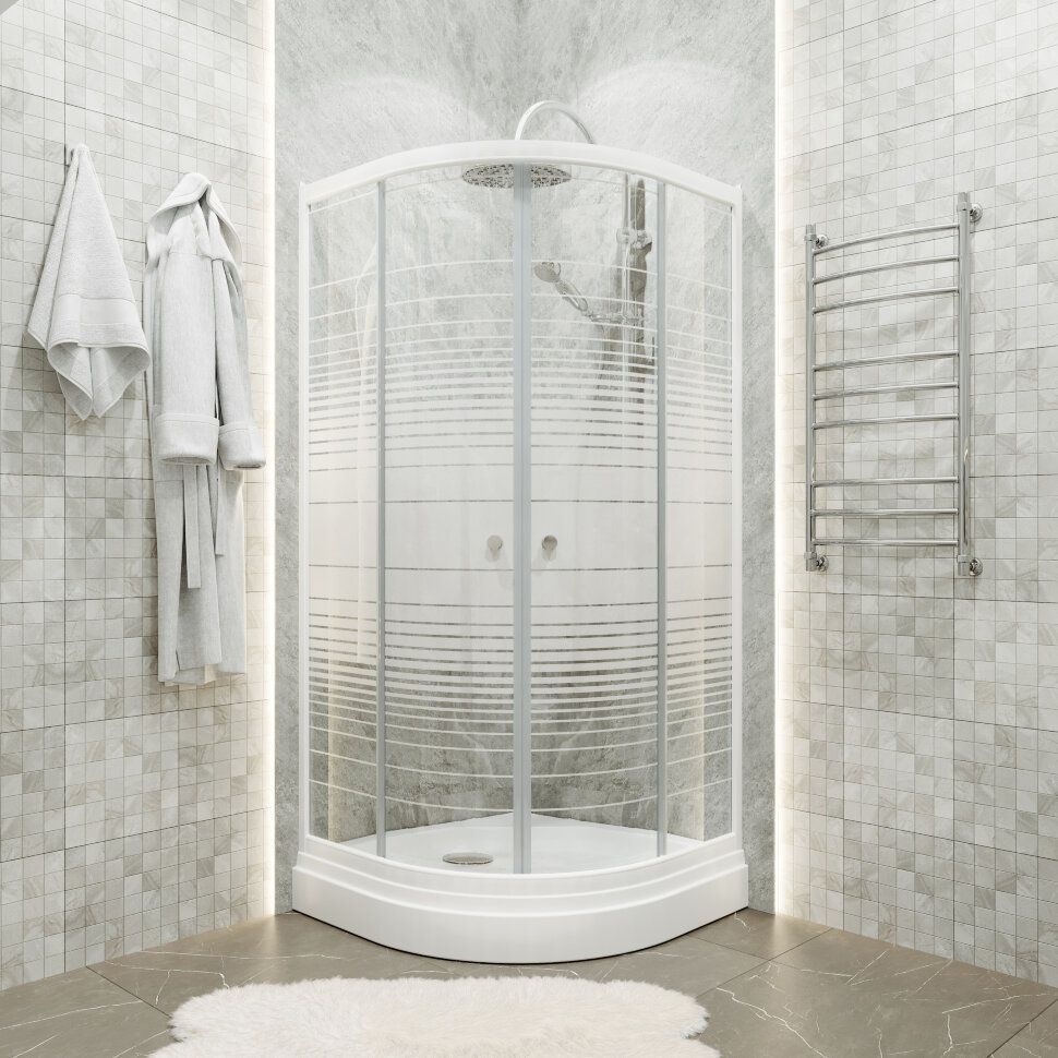 - Форма четверть круга позволяет удобно разместить конструкцию в ванных комнатах небольшой площади.