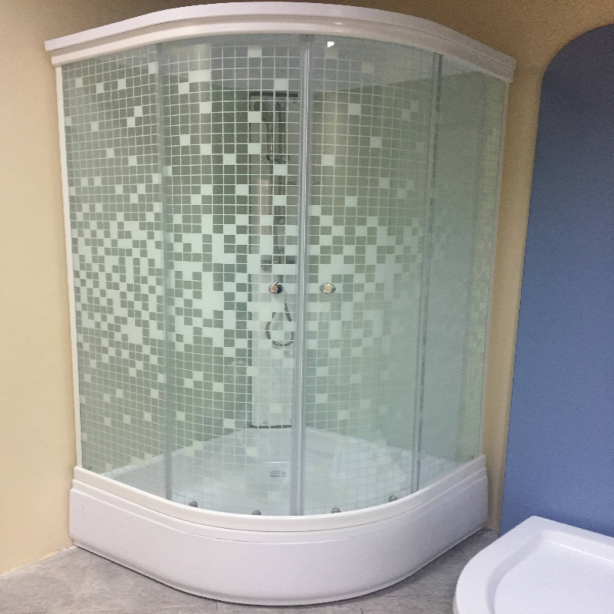 Душевой уголок Мозаика – это достаточно практичный и экономичный вариант для оснащения современных санузлов. Укомплектованный средним поддоном, он представляет собой только переднее ограждение, монтируемое непосредственно к стенам самой ванной комнаты. Шторки душевого угла выполнены из ударопрочного закалённого стекла в расцветке «Мозаика».