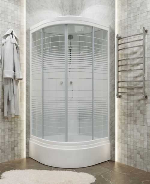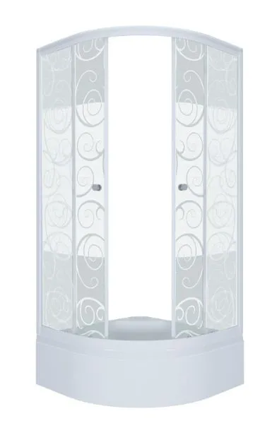 Душевой уголок Узоры – это достаточно практичный и экономичный вариант для оснащения современных санузлов. Укомплектованный средним поддоном, он представляет собой только переднее ограждение, монтируемое непосредственно к стенам самой ванной комнаты. Шторки душевого угла выполнены из ударопрочного закалённого стекла в расцветке «Узоры».