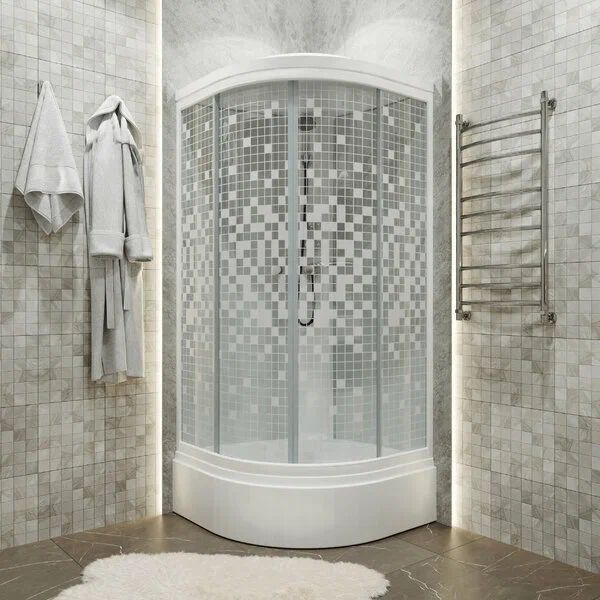 Душевой уголок Мозаика – это достаточно практичный и экономичный вариант для оснащения современных санузлов. Укомплектованный средним поддоном, он представляет собой только переднее ограждение, монтируемое непосредственно к стенам самой ванной комнаты. Шторки душевого угла выполнены из ударопрочного закалённого стекла в расцветке «Мозаика».