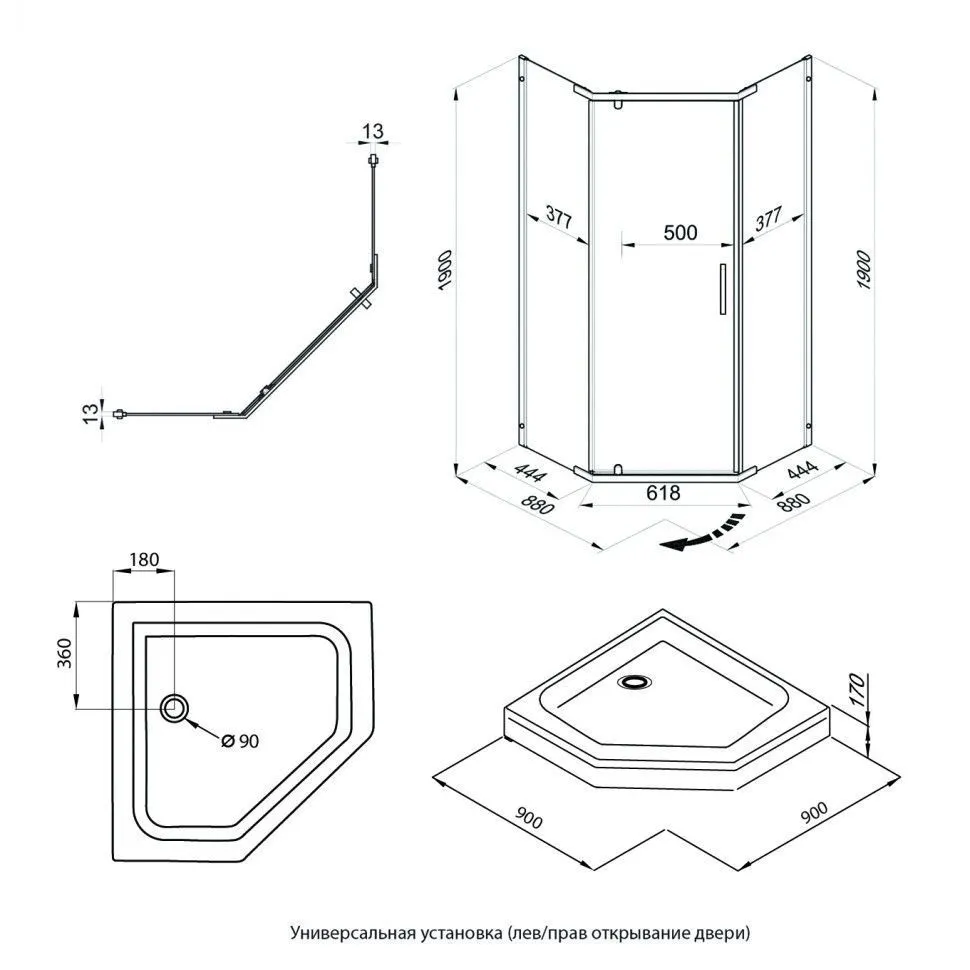 Душевой уголок Дека-Хром (Тритон) 900х900х2070 мм, пятиугольный.