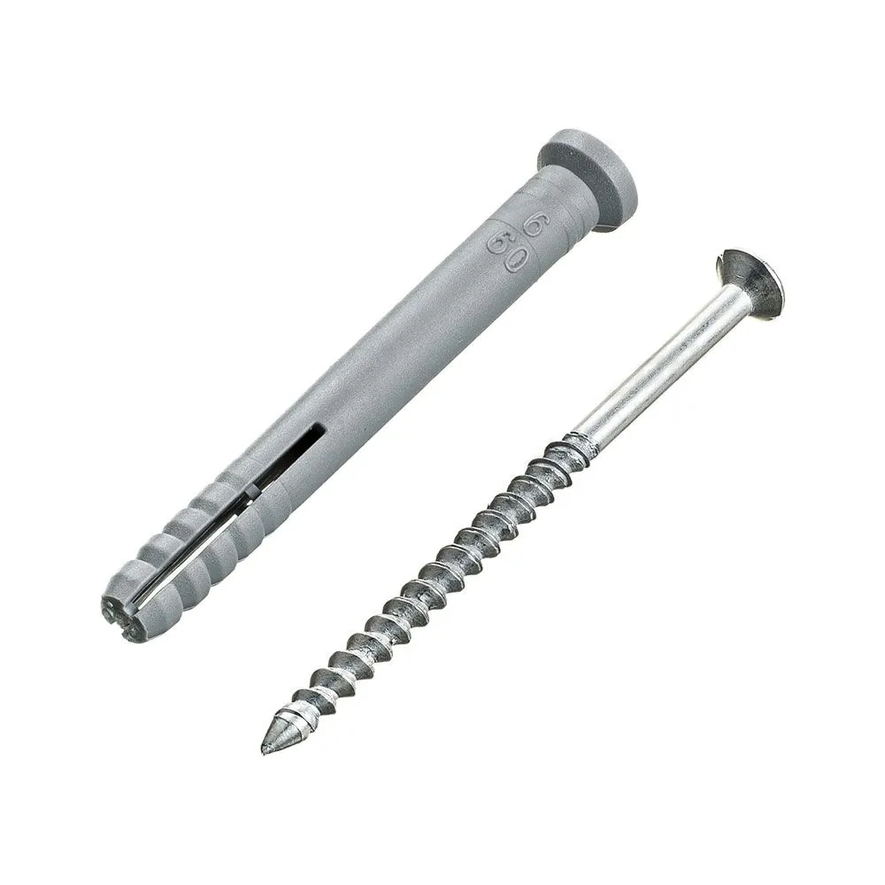 Гвоздь, выполненный из оцинкованной стали, обладает улучшенными характеристиками устойчивости к коррозии. Полипропиленовый дюбель с ограничительной грибовидной манжетой не позволяет фиксатору проваливаться в подготовленное отверстие.