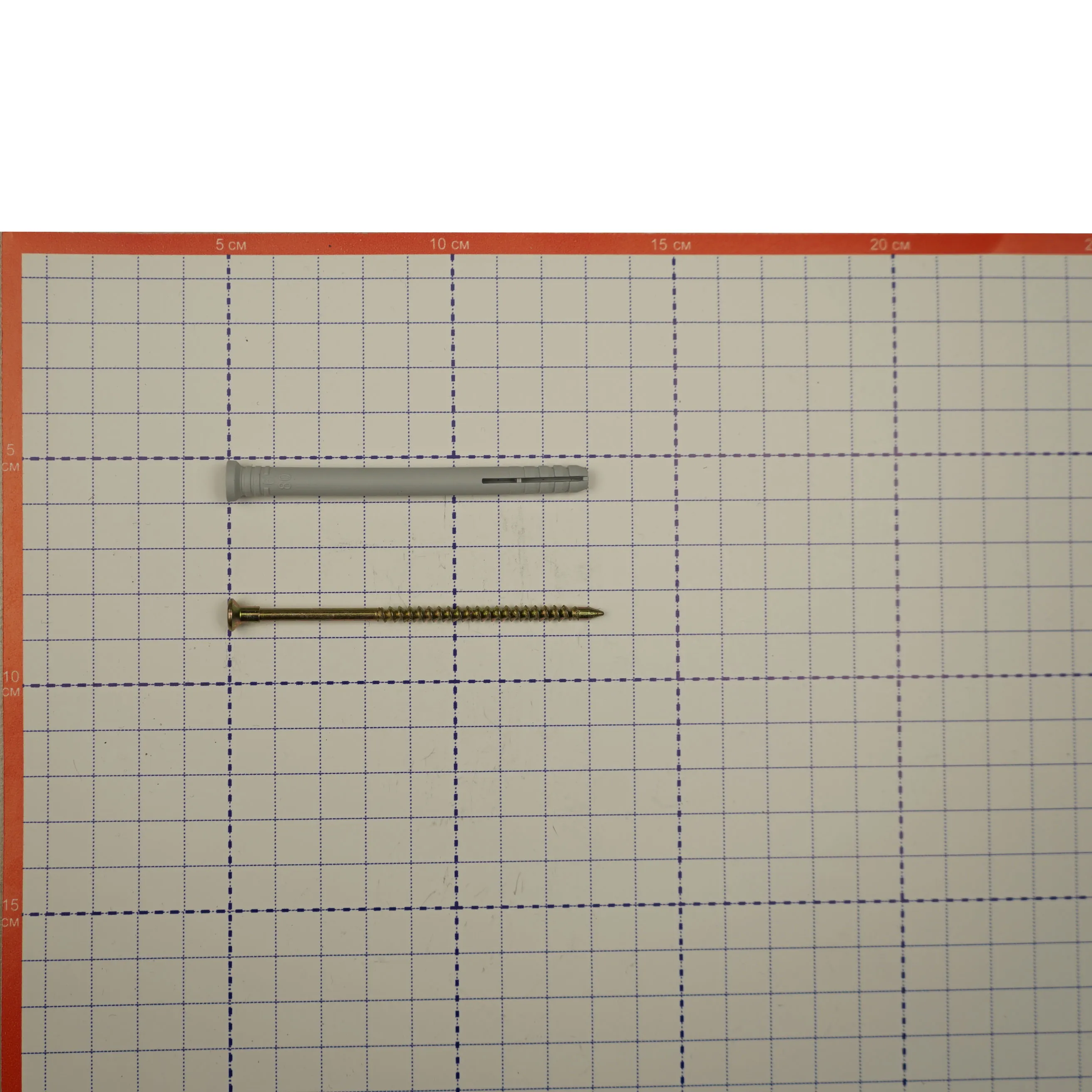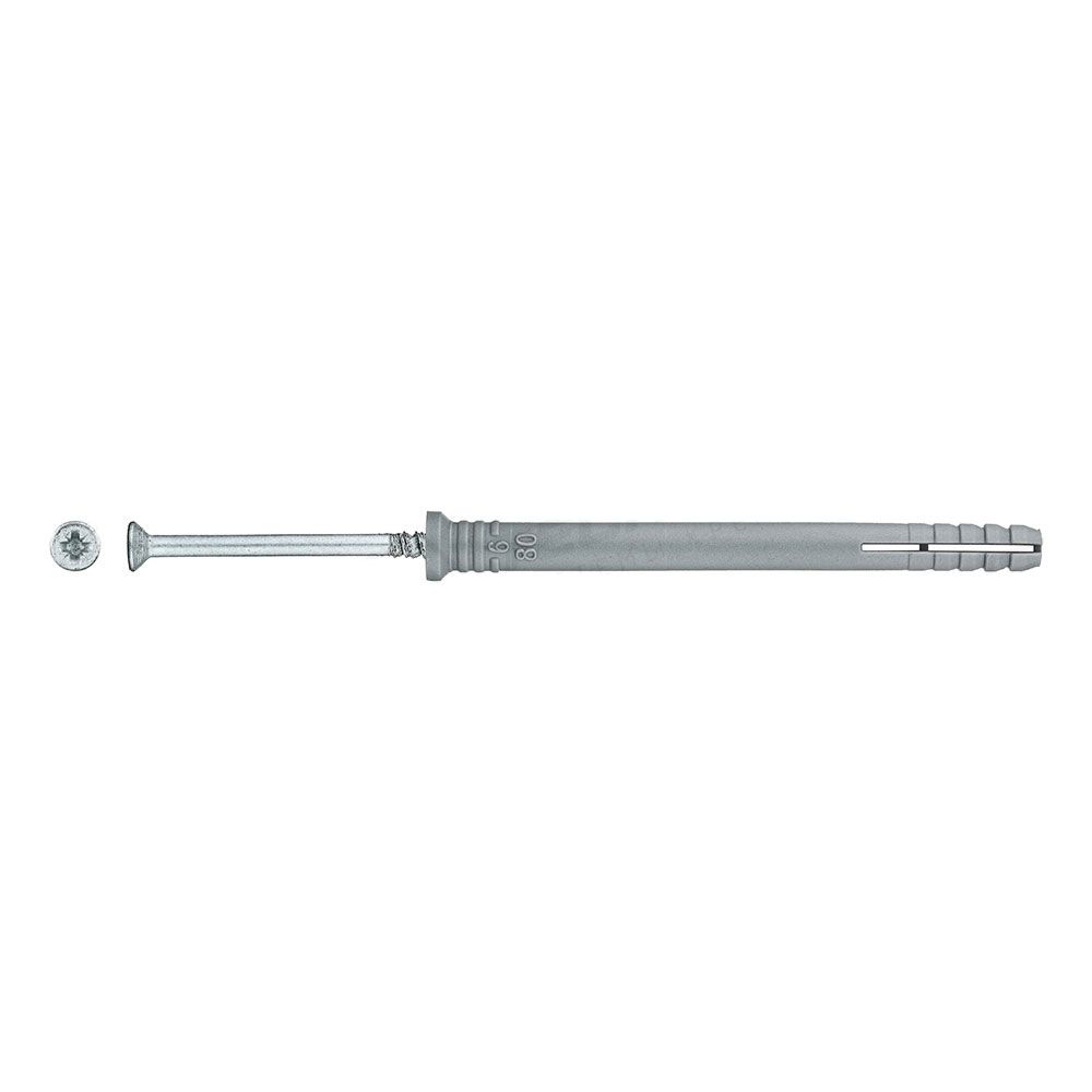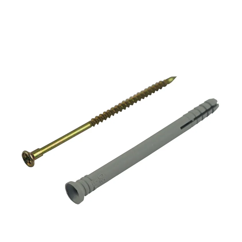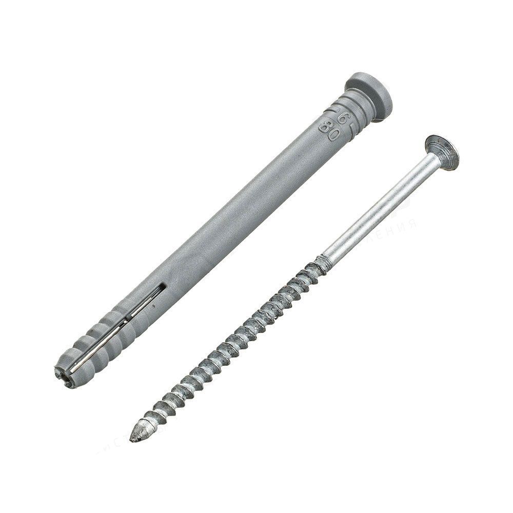 Полипропиленовый распорный дюбель с потайным бортиком для быстрого монтажа в комплекте со стальным оцинкованным гвоздем-шурупом.