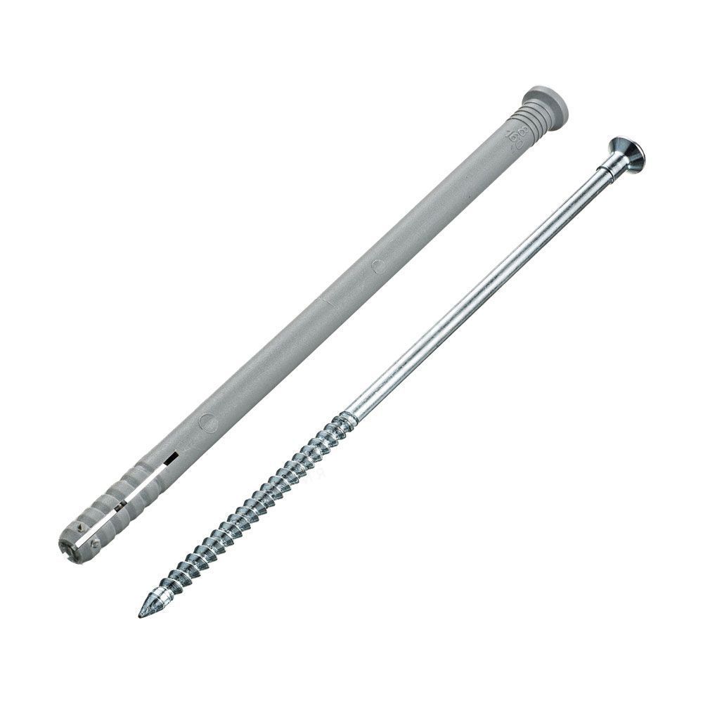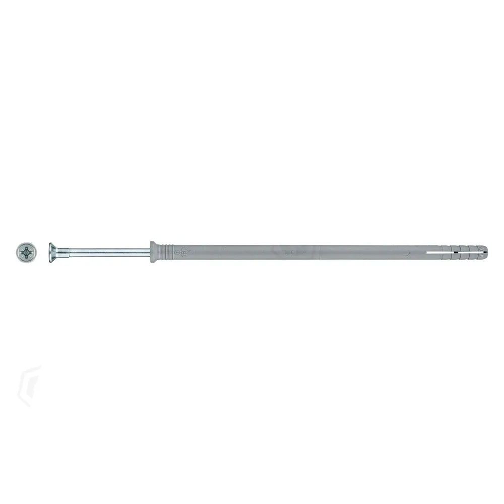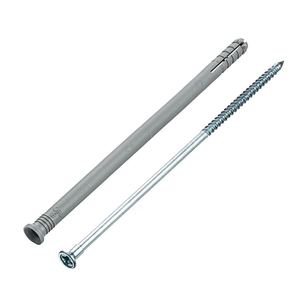 Полипропиленовый распорный дюбель с потайным бортиком для быстрого монтажа в комплекте со стальным оцинкованным гвоздем-шурупом.