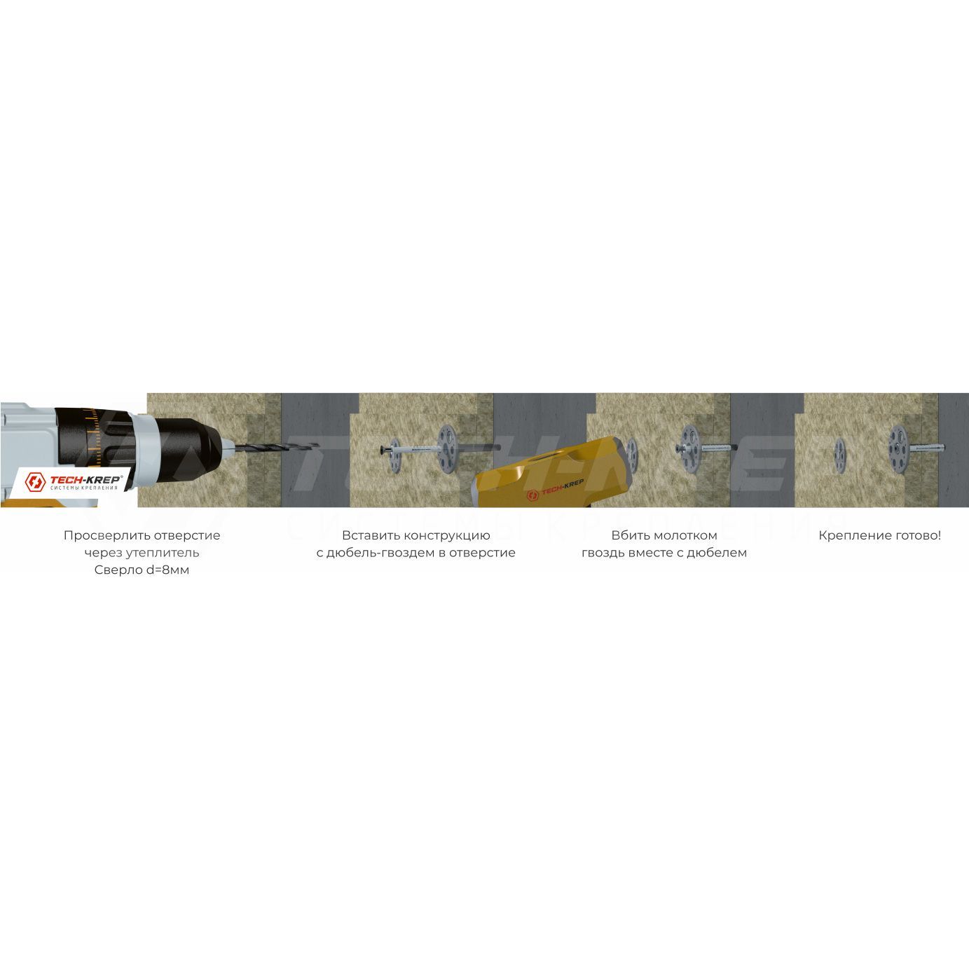 Предназначен для крепления теплоизоляционных изделий любой толщины к внутренним и наружным поверхностям зданий различного назначения, к деревянному основанию и к основанию из стального листа при помощи самореза соответствующей длины, а также к бетонному и крипичному основанию, при помощи дюбель-гвоздя или шурупа по бетону.