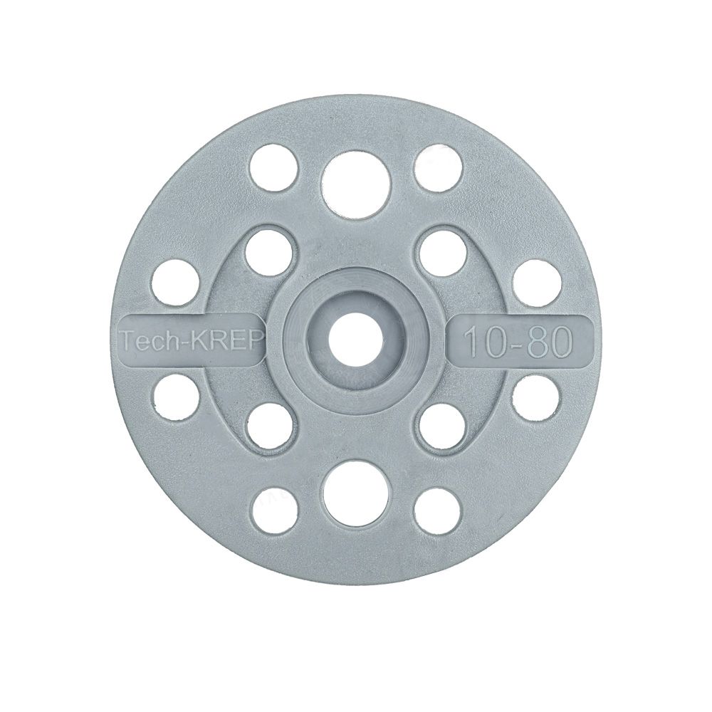 Полимерный тарельчатый дюбель диаметром 10 мм, длиной 80мм, диаметром шляпки 60 мм, с пластиковым гвоздем.