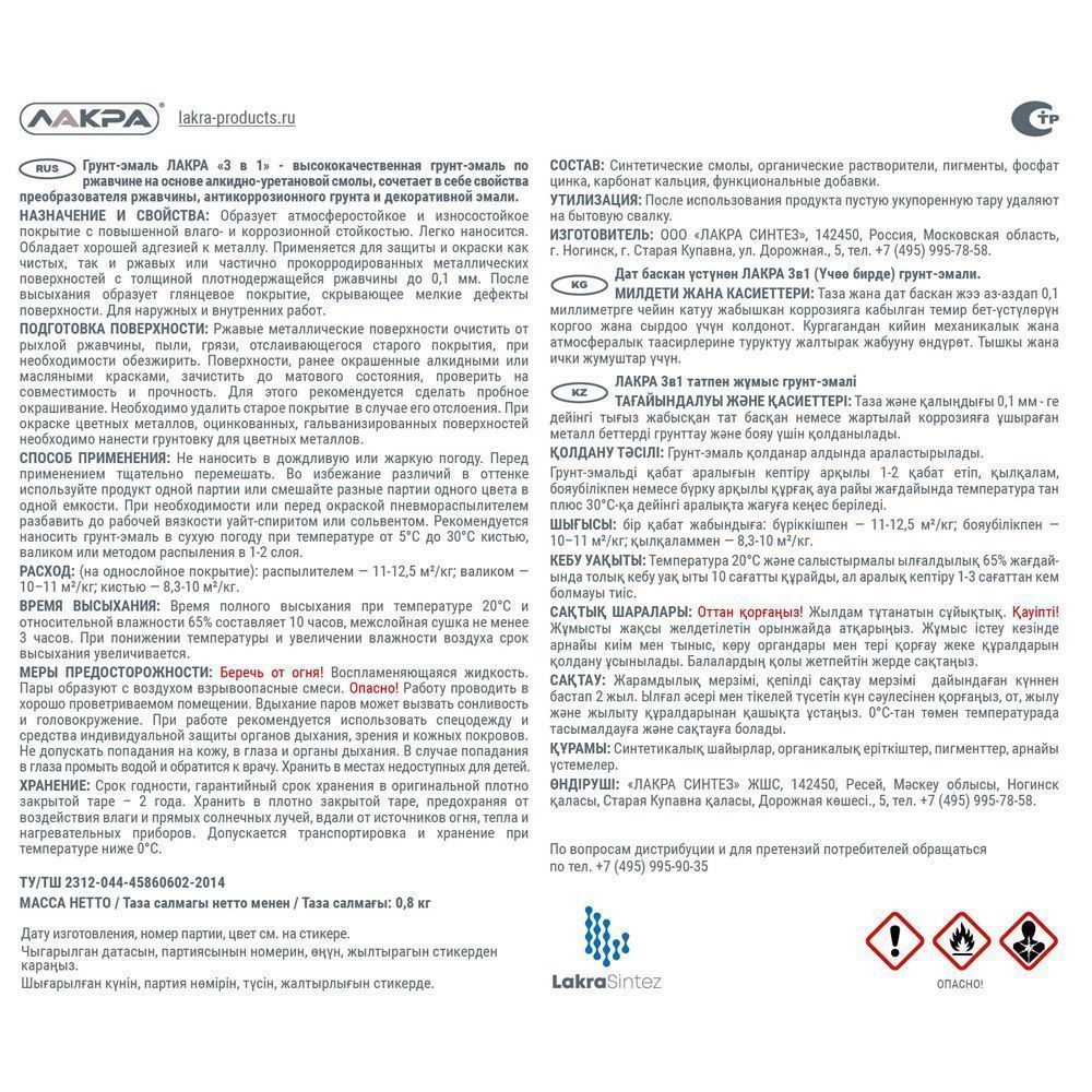 Грунт-эмаль на алкидной основе для наружных и внутренних работ.