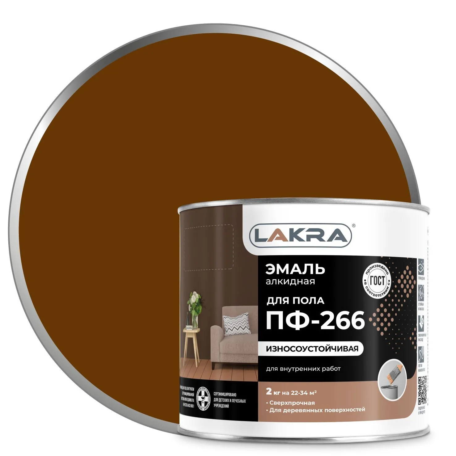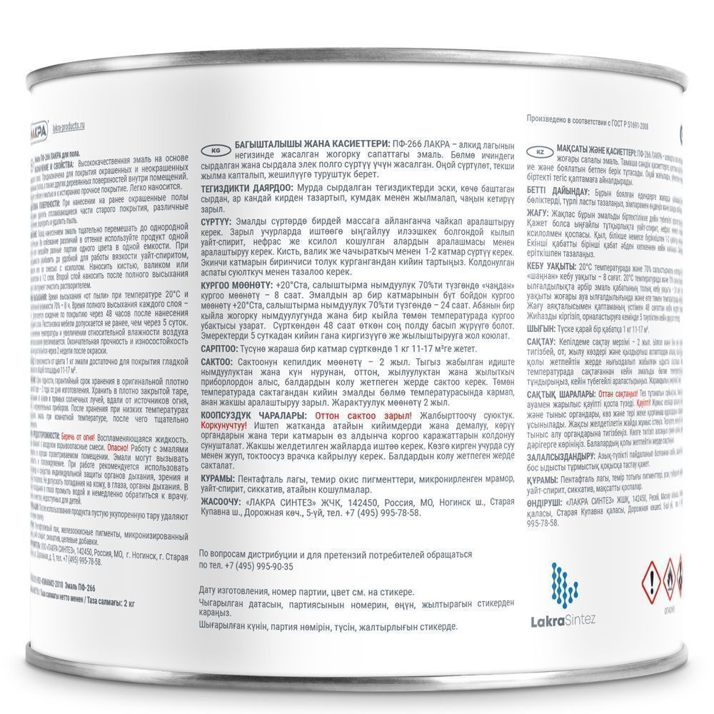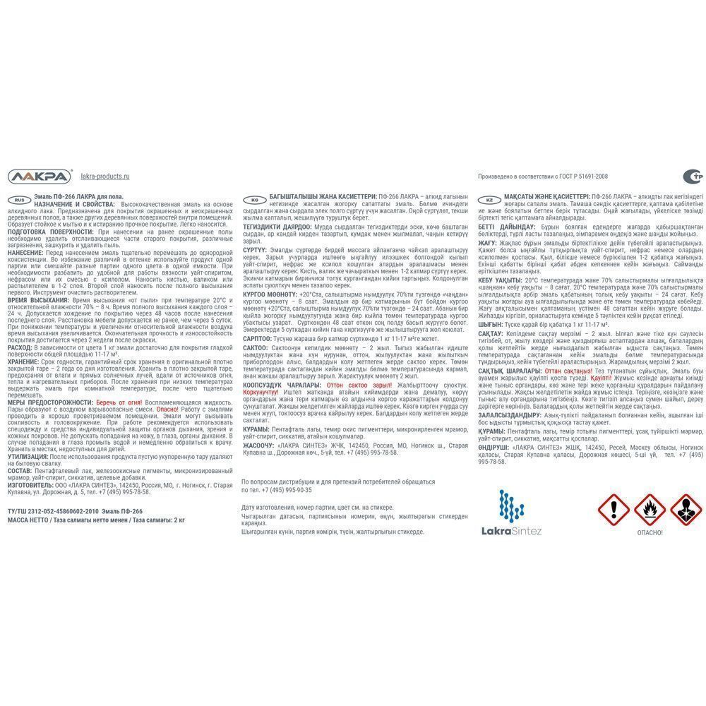 Эмаль Лакра для пола - высококачественная эмаль на основе алкидного лака. Эмаль для пола Лакра образует полуглянцевую поверхность, стойкую к механическим воздействиям, влаге и истиранию. Она отличается высокими декоративными и защитными свойствами, стойкая к мытью. Эмаль готова к применению. Быстро высыхает.
