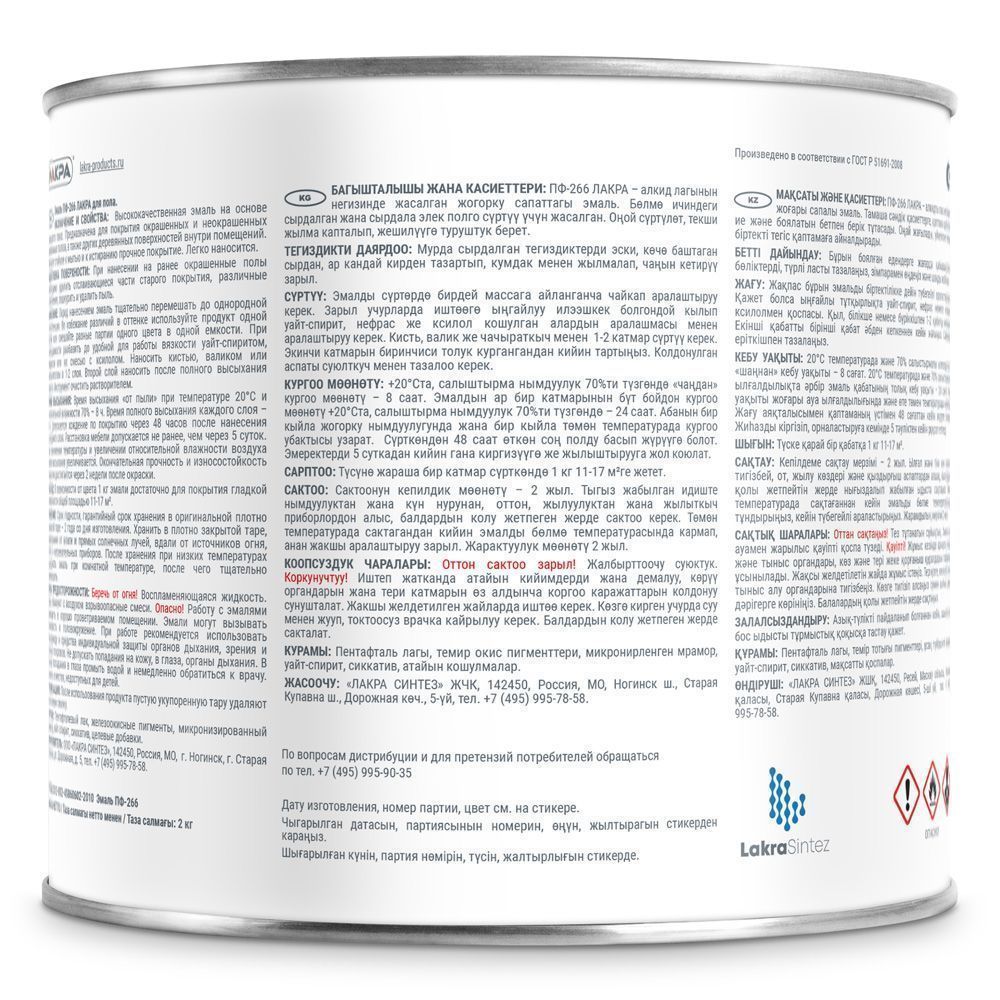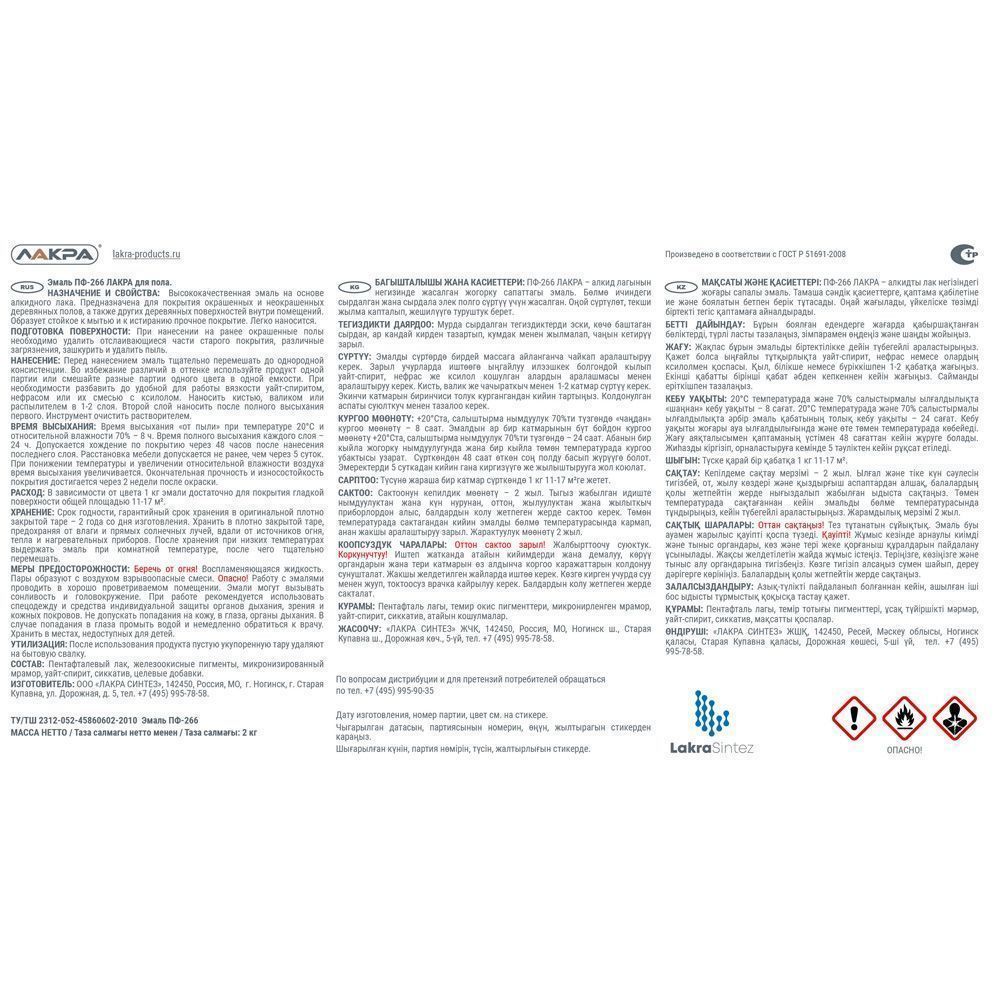 Эмаль Лакра для пола - высококачественная эмаль на основе алкидного лака. Эмаль для пола Лакра образует полуглянцевую поверхность, стойкую к механическим воздействиям, влаге и истиранию. Она отличается высокими декоративными и защитными свойствами, стойкая к мытью. Эмаль готова к применению. Быстро высыхает.