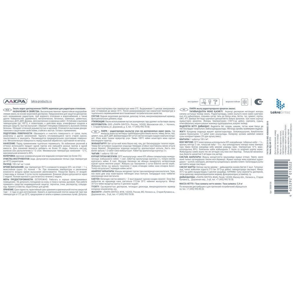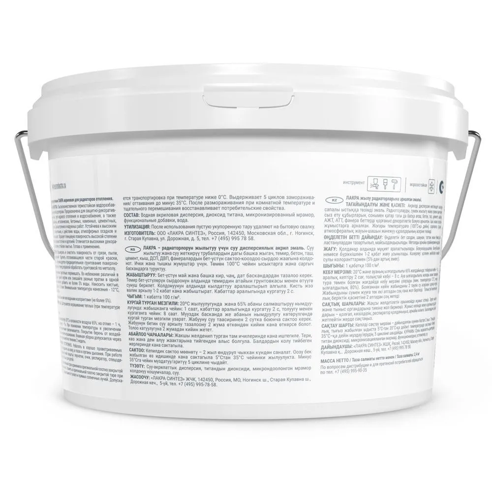 Эмаль акриловая лакра для радиаторов белая, глянцевая, 2,4 кг