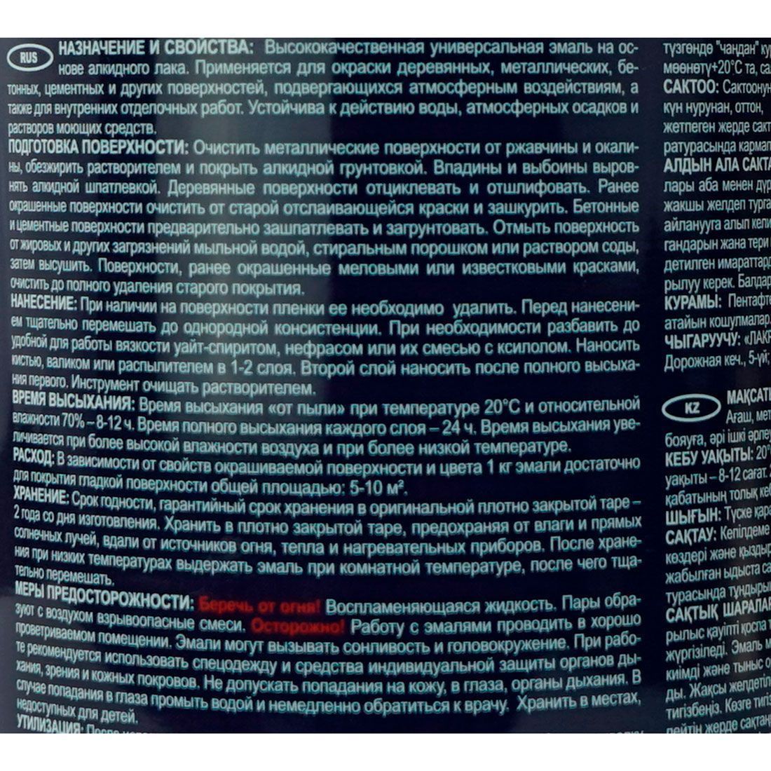 Беречь от огня! Воспламеняющаяся жидкость. Пары образуют с воздухом взрывоопасные смеси. Осторожно! Работу с эмалями проводить в хорошо проветриваемом помещении. Эмали могут вызывать сонливость и головокружение. При работе рекомендуется использовать спецодежду и средства индивидуальной защиты органов дыхания, зрения и кожных покровов. Не допускать попадания на кожу, в глаза, органы дыхания. В случае попадания в глаза промыть водой и немедленно обратиться к врачу. Хранить в местах, недоступных для детей.