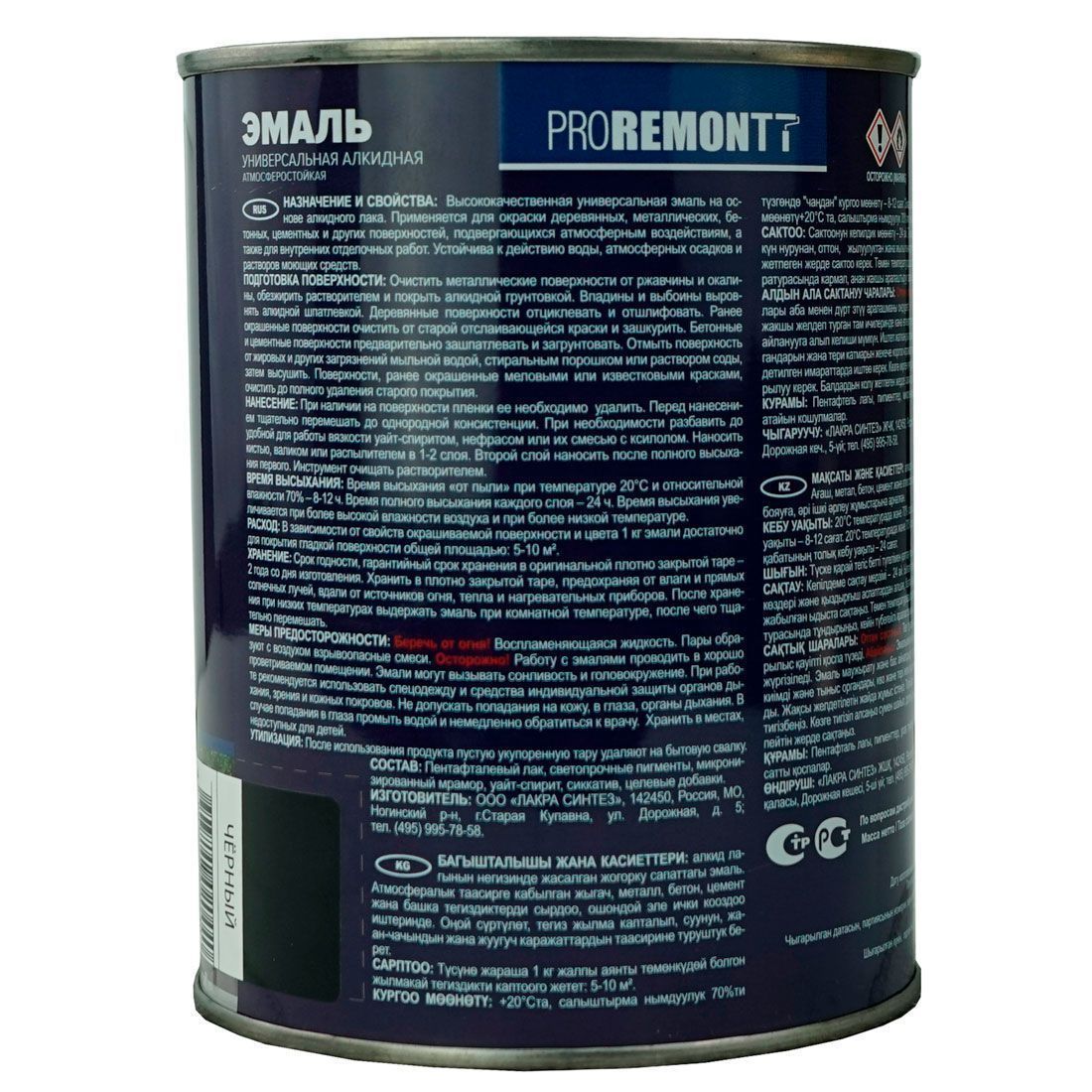 Эмаль ПФ-115 Proremontt черная 0,9кг