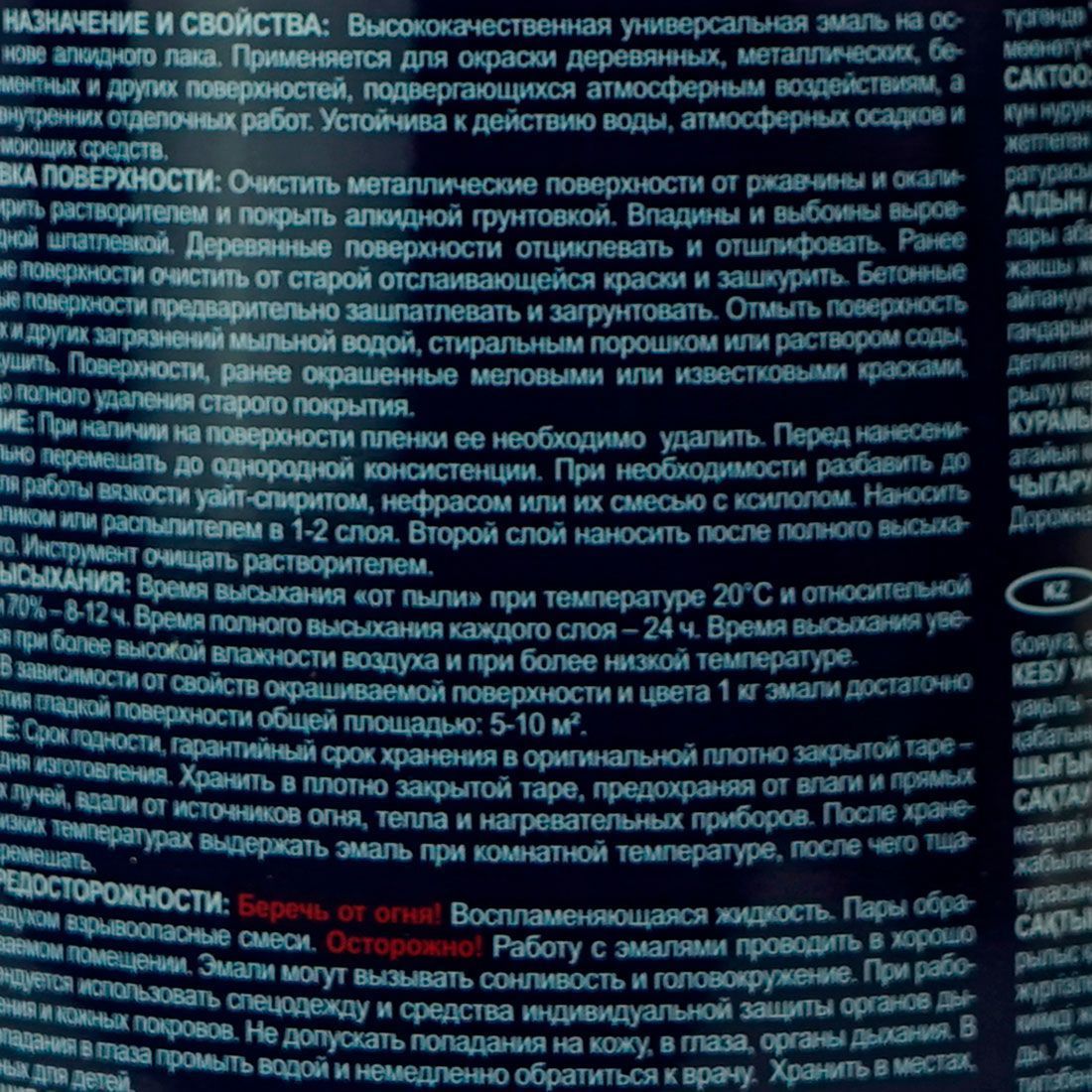 Высококачественная эмаль на основе алкидного лака. Обладает хорошими декоративными свойствами, укрывистостью и прочным сцеплением с окрашиваемой поверхностью. Легко наносится, образуя однородное гладкое покрытие, устойчивое к действию воды, атмосферных осадков и растворов моющих средств. Готова к применению.