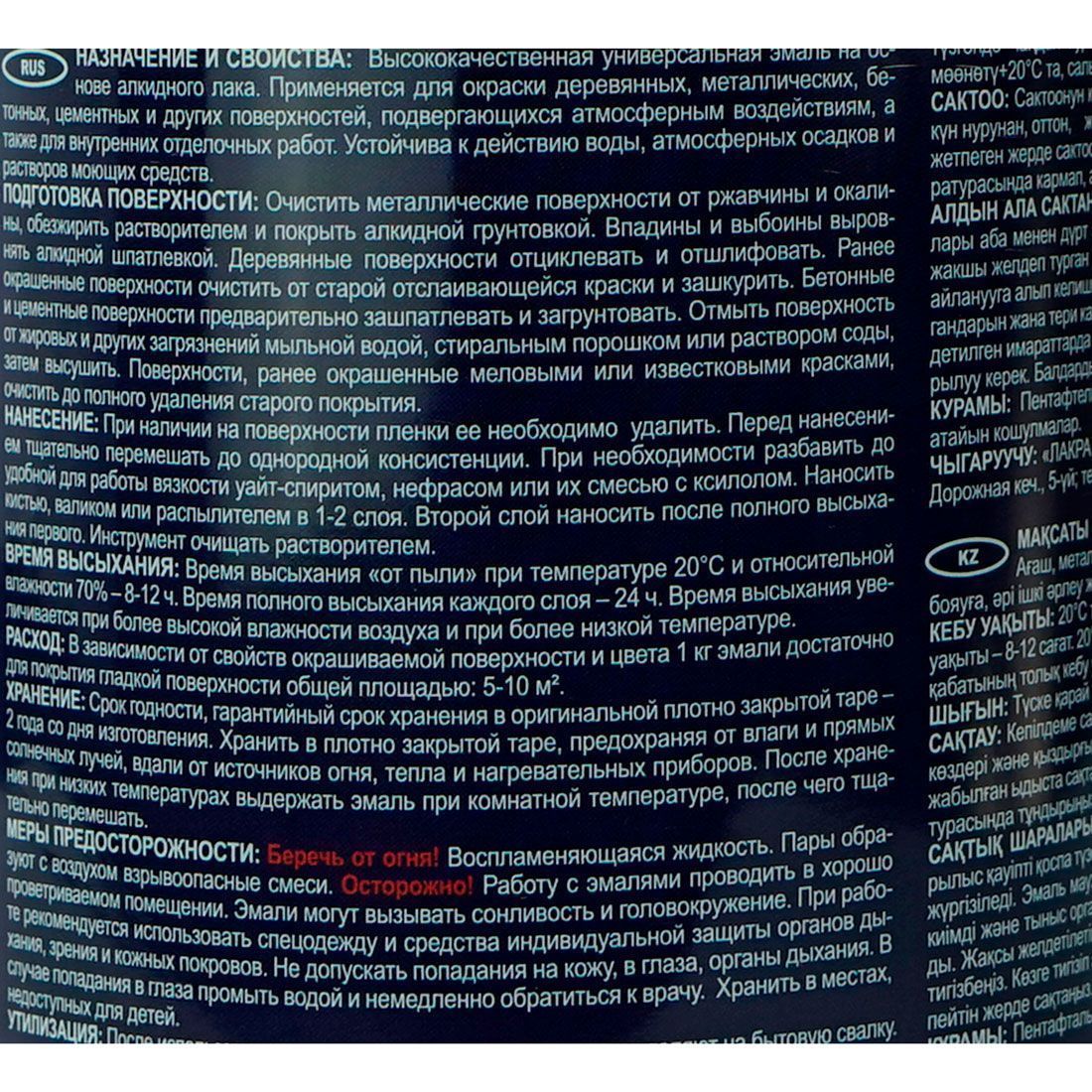 Высококачественная эмаль на основе алкидного лака. Обладает хорошими декоративными свойствами, укрывистостью и прочным сцеплением с окрашиваемой поверхностью. Легко наносится, образуя однородное гладкое покрытие, устойчивое к действию воды, атмосферных осадков и растворов моющих средств. Готова к применению.