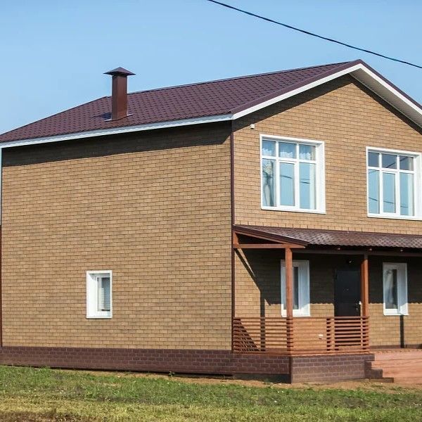 При помощи фасадной плитки Хауберк выполняют облицовку фасадов строений из дерева, пено- и газоблоков, а также заборов и ограждений. Фасадную плитку HAUBERK применяют и для декоративного оформления входных групп и фронтонов.