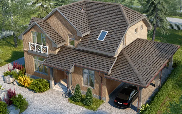 Фасадная плитка HAUBERK – облицовочный материал, изготовленный из биостойкого стеклохолста, улучшенного битума и гранулята из цветного натурального базальта