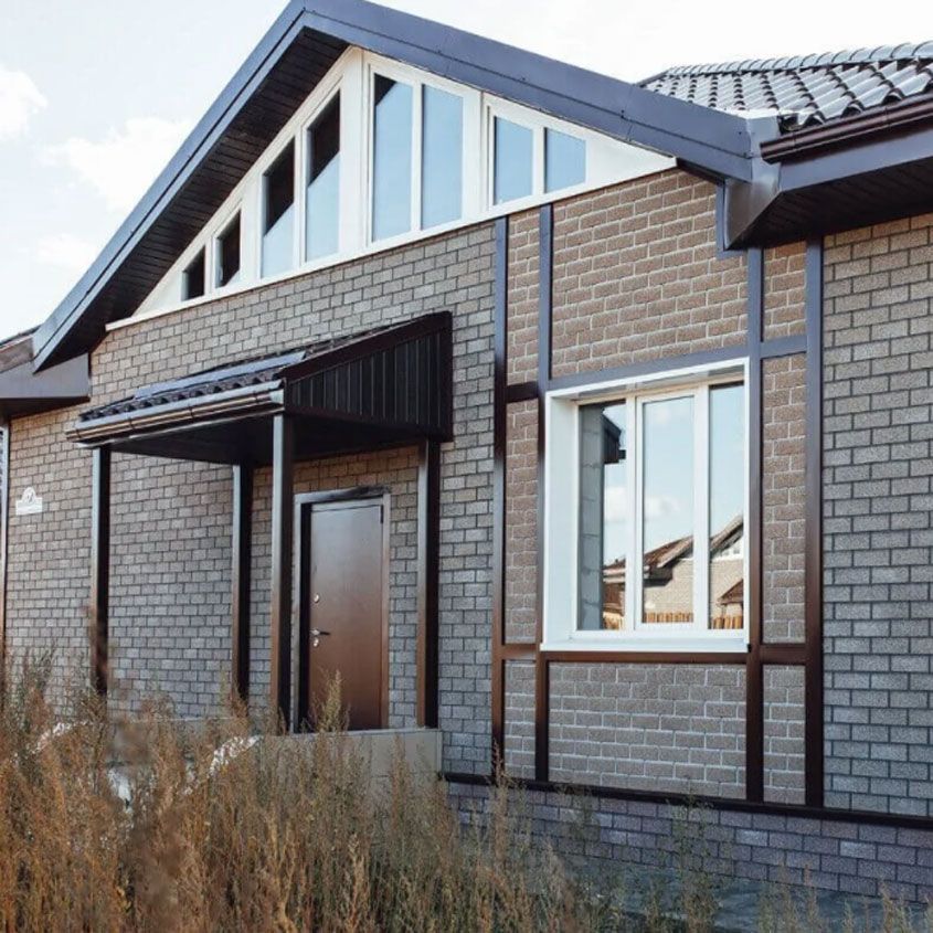 При помощи фасадной плитки Хауберк выполняют облицовку фасадов строений из дерева, пено- и газоблоков, а также заборов и ограждений. Фасадную плитку HAUBERK применяют и для декоративного оформления входных групп и фронтонов.