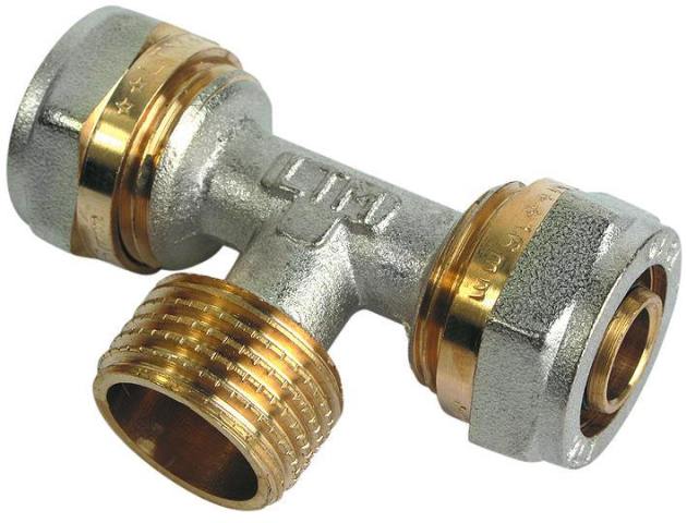 Тройник предназначен для создания ответвления с металлопластиковой трубы на запорную арматуру или стальные трубы.