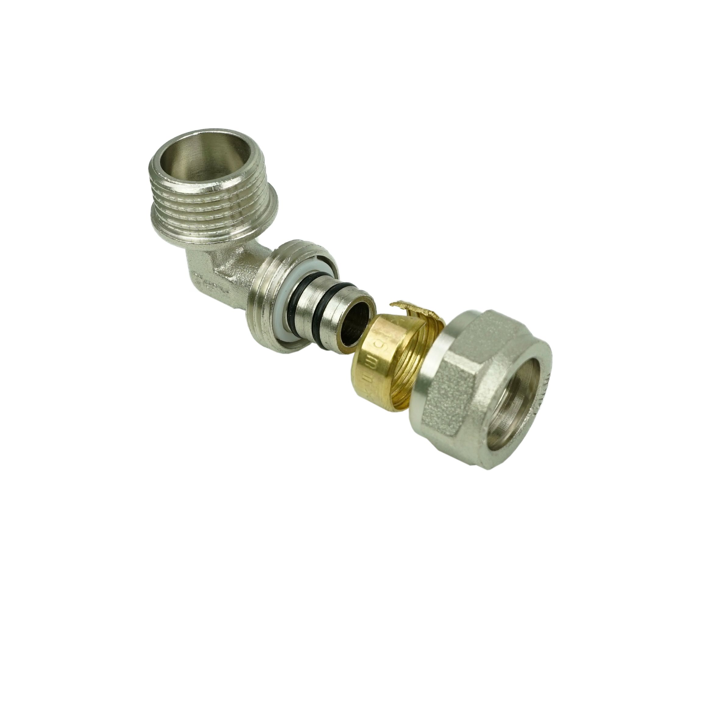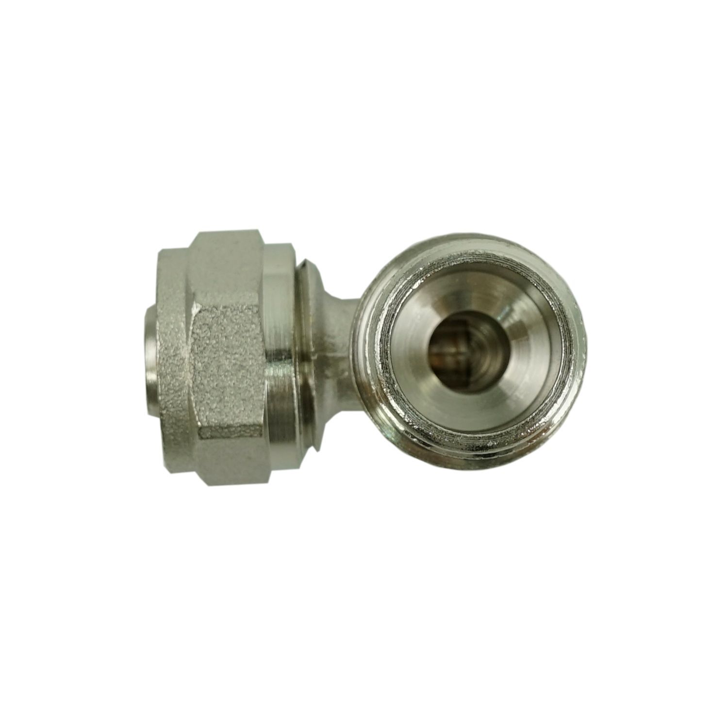 Уголок применяется для поворота металлопластиковой трубы и одновременного перехода на запорную арматуру или стальные трубы.