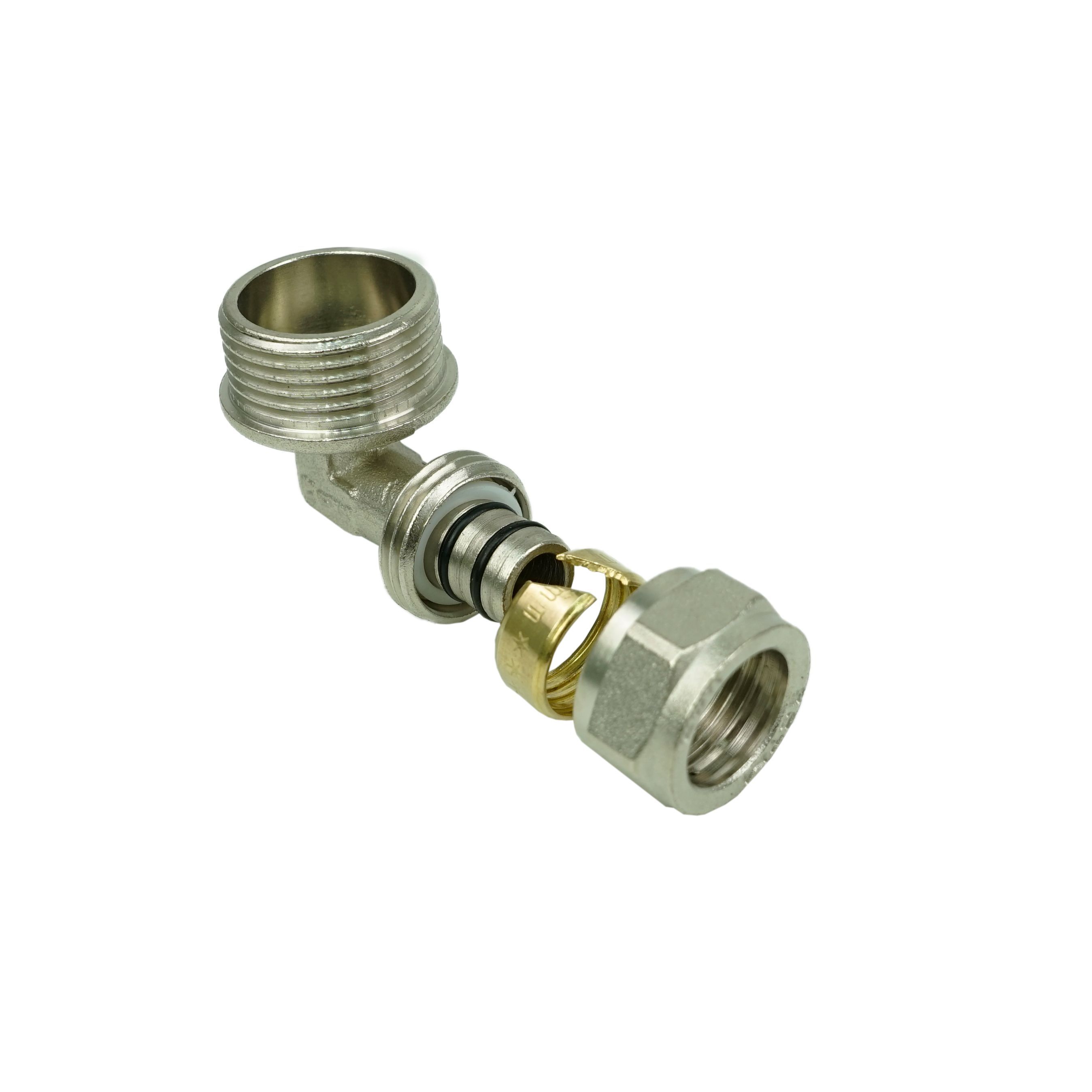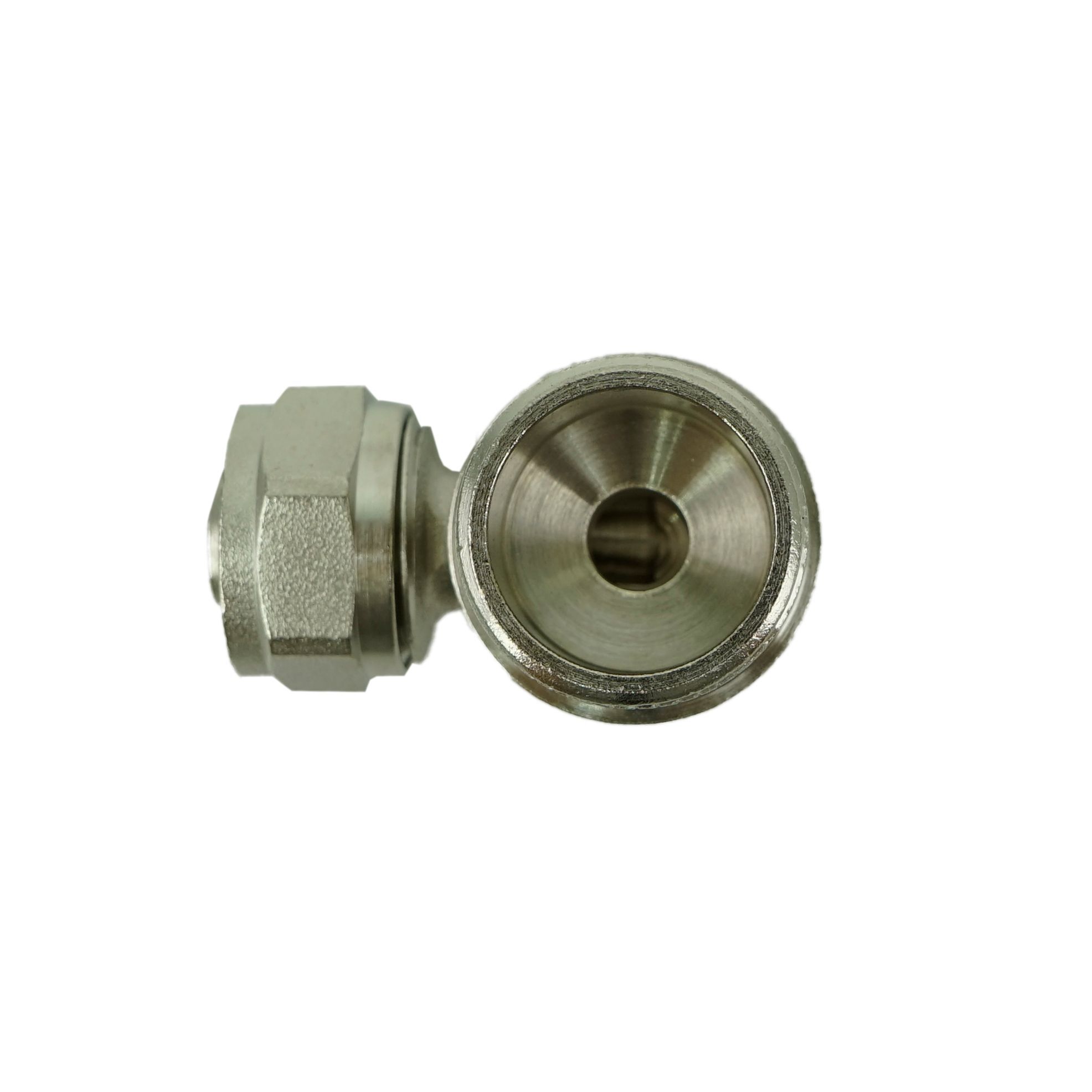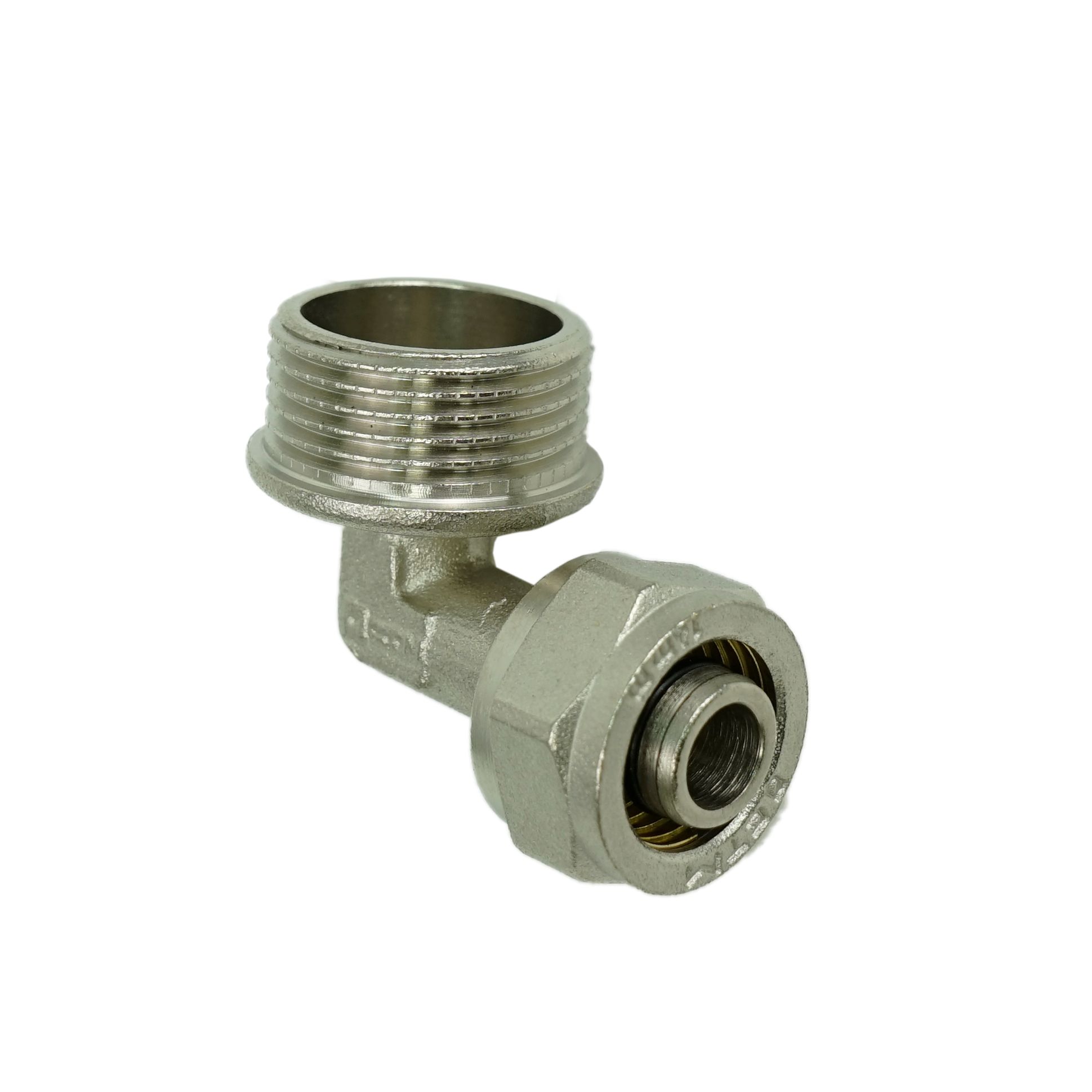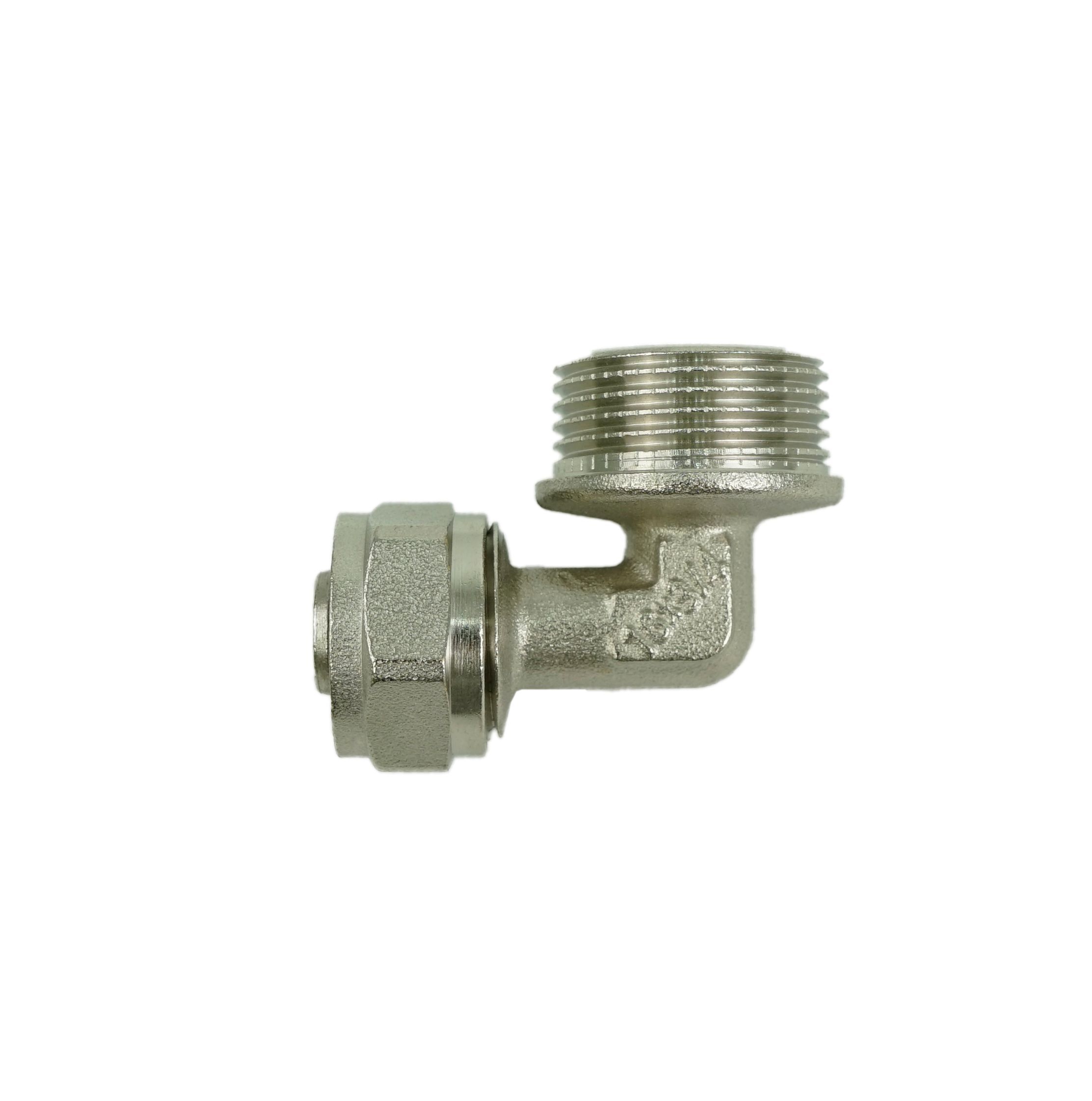 Уголок применяется для поворота металлопластиковой трубы и одновременного перехода на запорную арматуру или стальные трубы.