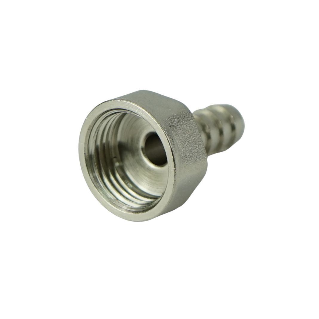 Присоединительный патрубок штуцера имеет внутреннюю резьбу, а сам штуцер для шланга имеет конфигурацию, эффективную для его фиксации. Присоединение шланга необходимо производить с помощью стальных винтовых хомутов.