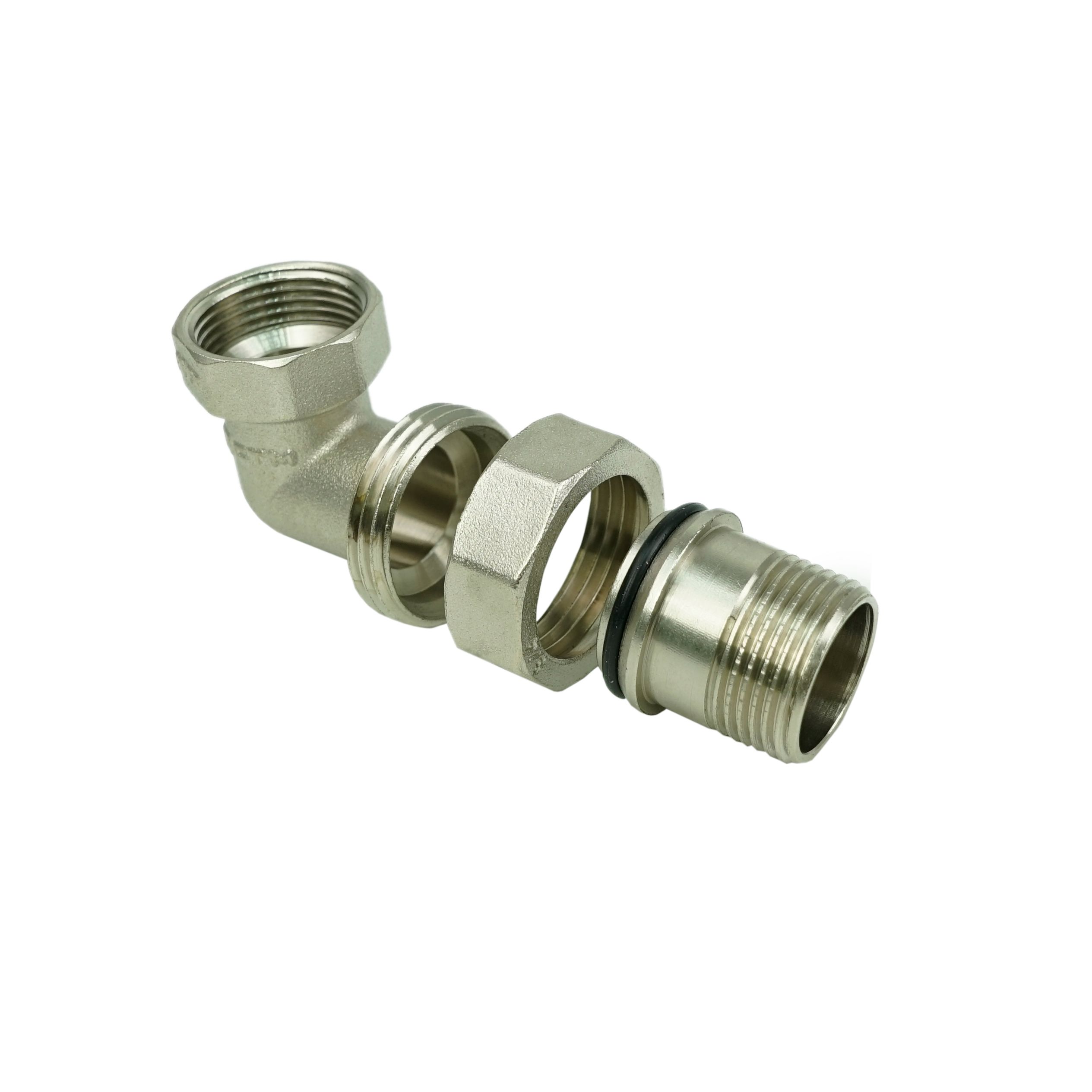Детали соединителя с накидной гайки изготавливаются из высококачественной горячепрессованной латуни и имеют никелированное покрытие. В конструкции соединителя с накидной гайкой используется уплотнительное кольцо, изготовленное из резины EPDM.