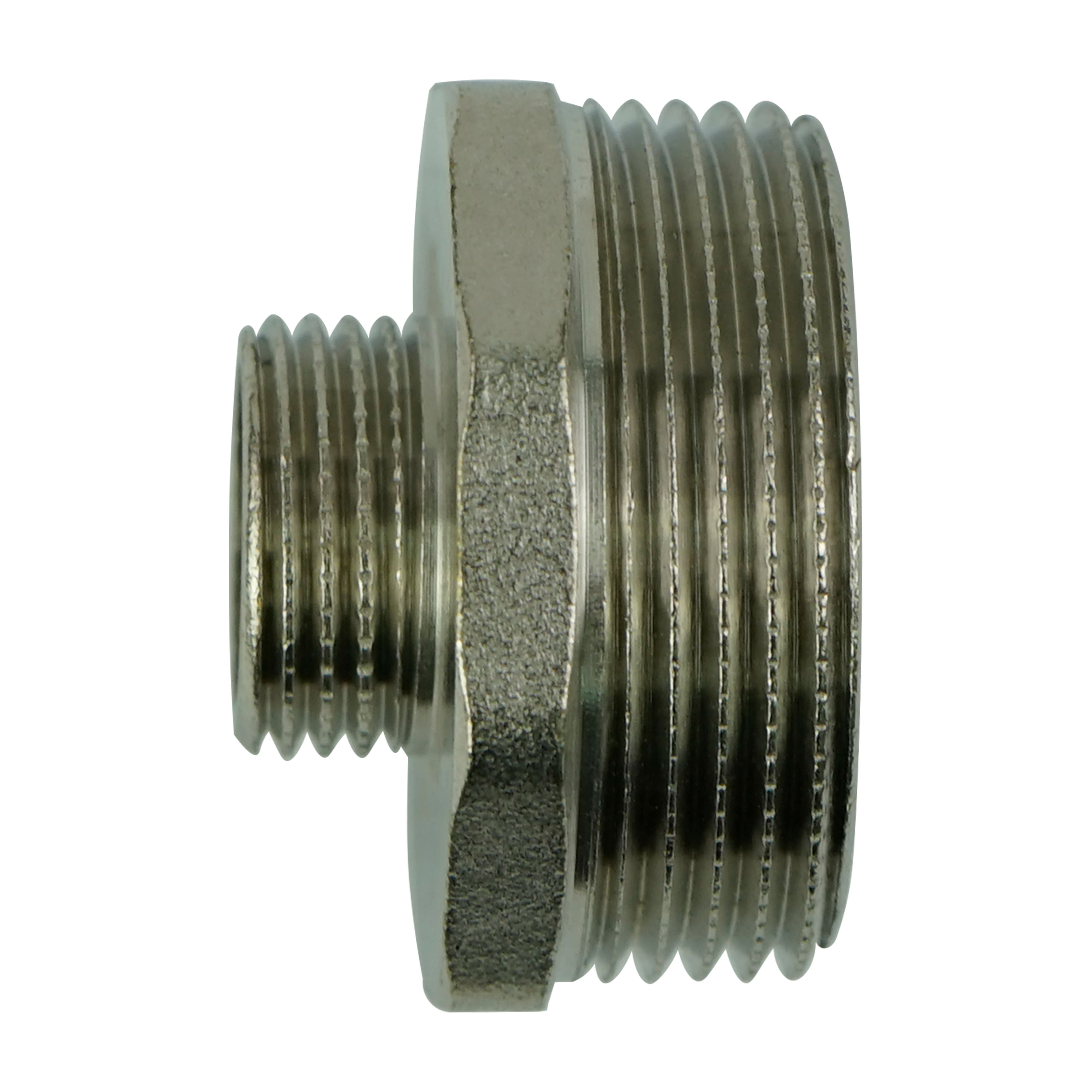 Резьбовой фитинг с наружной резьбой для соединения элементов трубопровода разного диаметра.