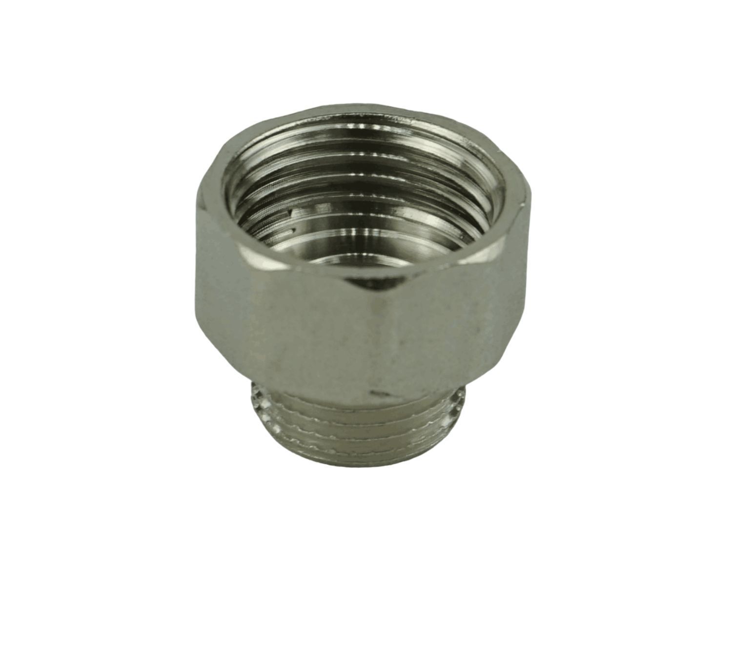 Переходник 1/2"(вн)х3/8"(нар) изготовлен методом горячего штампования из латуни с никелированным покрытием.