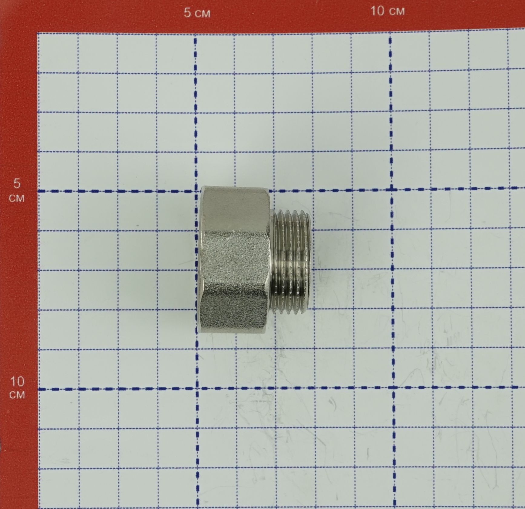 Переходник изготовлен методом горячего штампования из латуни с никелированным покрытием.