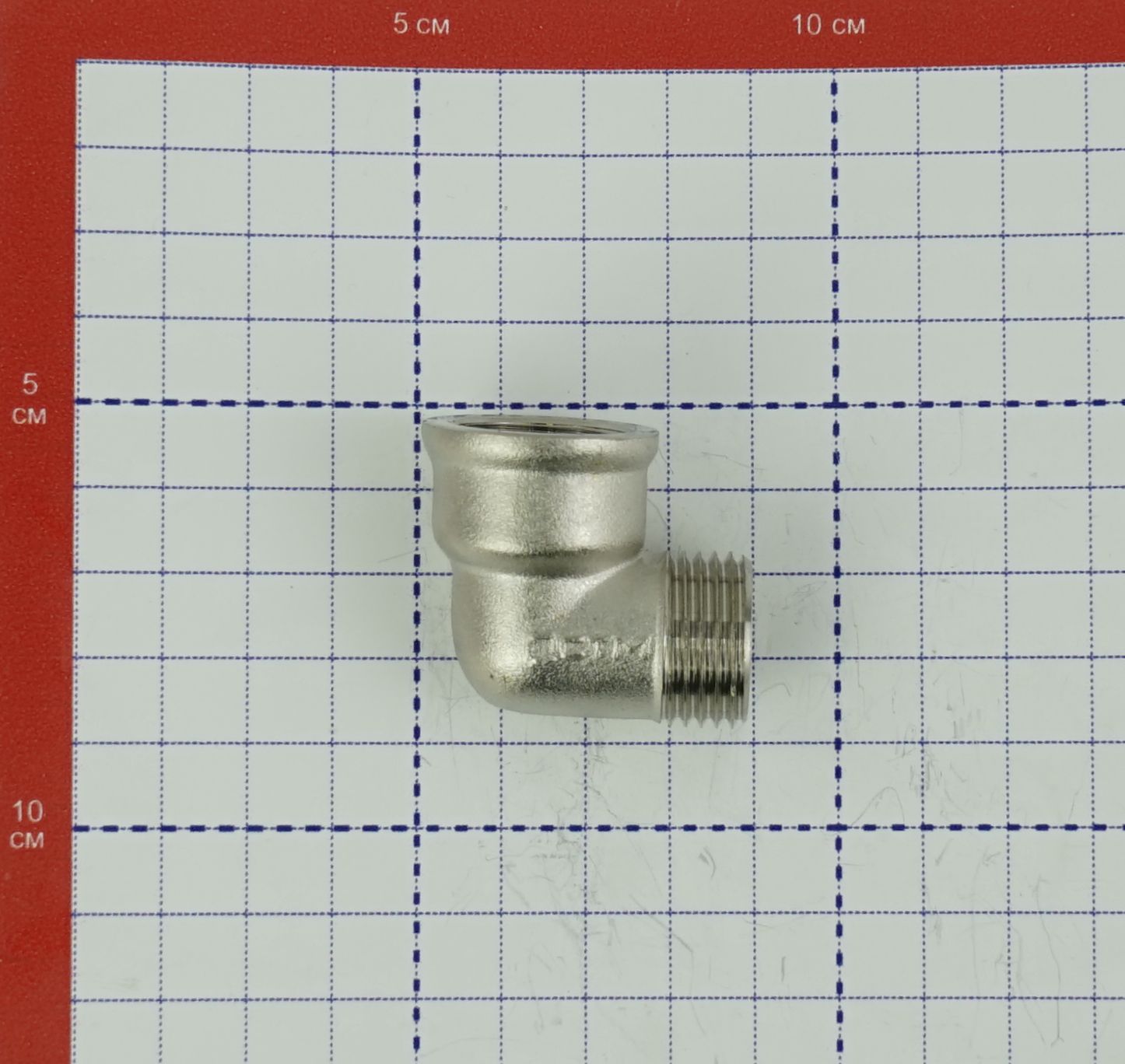 Угол выполнен из латуни с никелированным покрытием, которое защищает изделие от внешних воздействий.