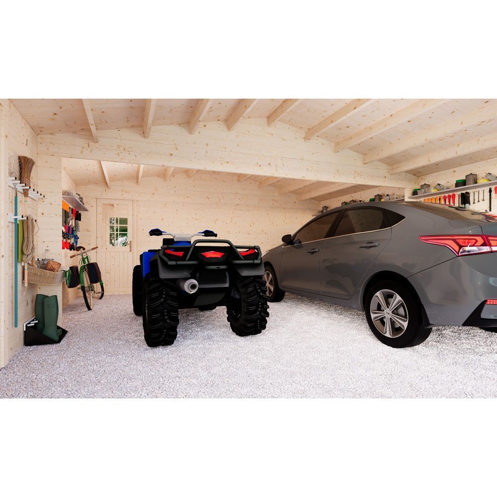 Вместительный гараж общей площадью 49 м² и размером 6×9 м разделен на две зоны: хозблок площадью 16 м² и гараж площадью 33 м². Гараж рассчитан на хранение одного автомобиля, а также мелкогабаритных транспортных средств, или садовой техники. Помещение оснащено двумя распашными окнами и отдельным входом с дверью. Два въезда обеспечивают комфортное размещение всех транспортных средств.