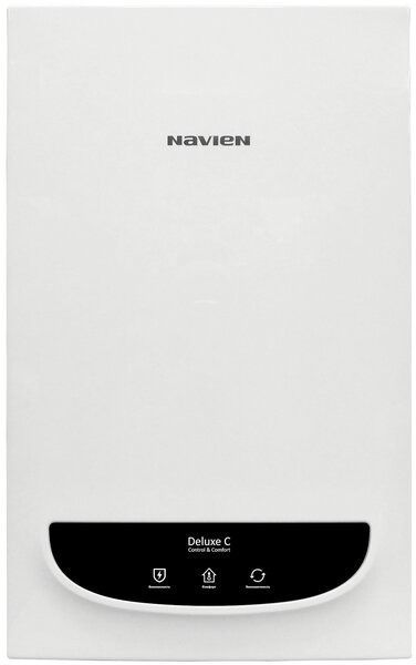 Deluxe Comfort – настенный газовый двухконтурный котел с закрытой камерой сгорания. В новинке были сохранены преимущества первого поколения: вентилятор с изменяемой частотой вращения, дифференциальный датчик давления воздуха, защита контроллера от перепадов напряжения SMPS-чипом. Значительные изменения коснулись гидравлических компонентов, намного упрощен процесс снятия таких узлов, как: вторичный теплообменник, трехходовой клапан, а также узлы гидрогруппы. Кроме того, был изменен принцип контроля наличия теплоносителя в отопительном контуре: датчик протока в контуре отопления заменился на датчик давления теплоносителя. Были изменены присоединительные размеры камеры сгорания к дымоходу, и сейчас для подключения коаксиального комплекта диаметром 60/100 не требуется переходник с 75-го диаметра, то есть к котлу теперь подходит универсальный дымоход и нет необходимости приобретать специальный коаксиал Navien.