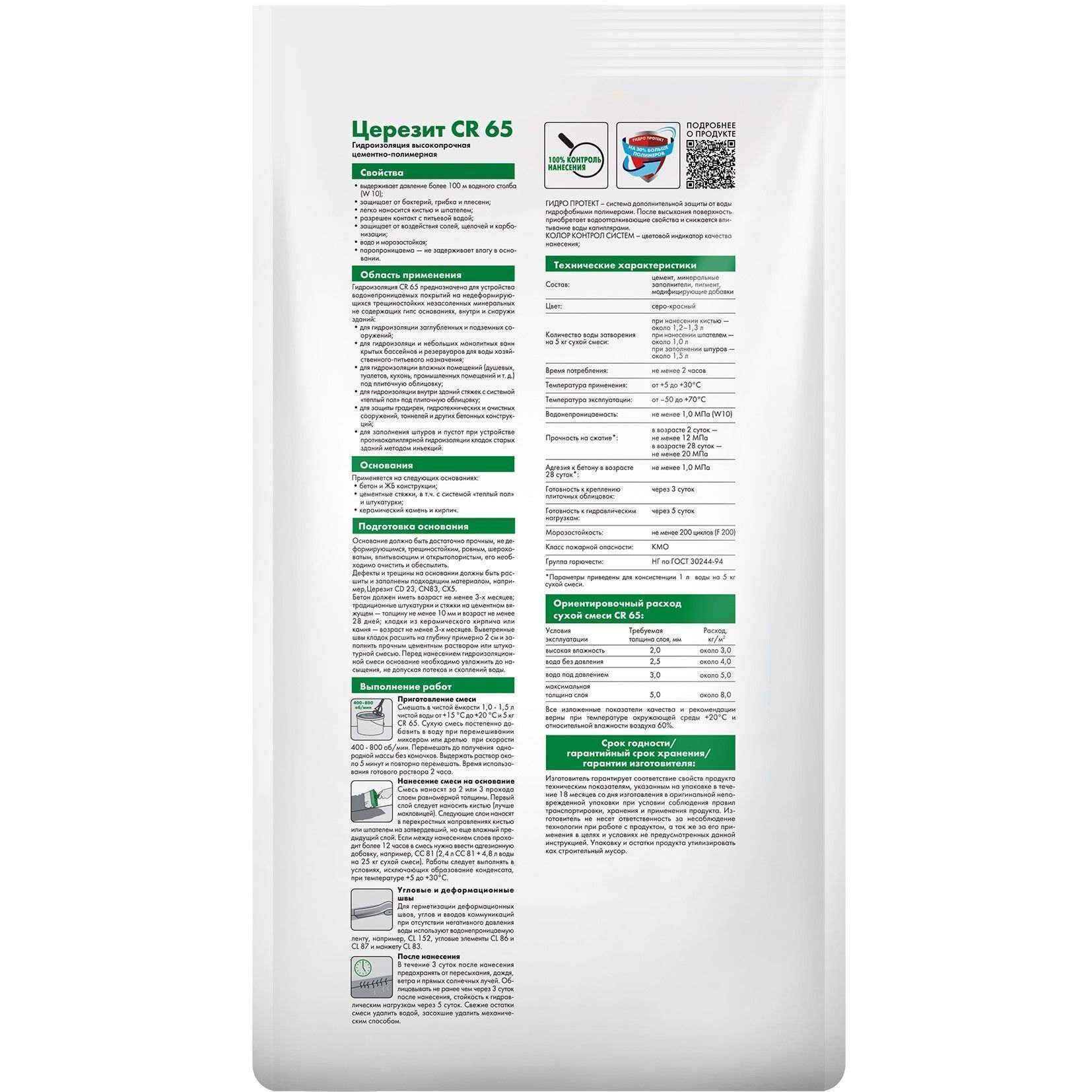 Гидроизоляционная смесь CR 65 WATERPROOF предназначена для устройства водонепроницаемых покрытий на недеформирующихся незасоленных минеральных не содержащих гипс основаниях на полах и стенах внутри и снаружи зданий.