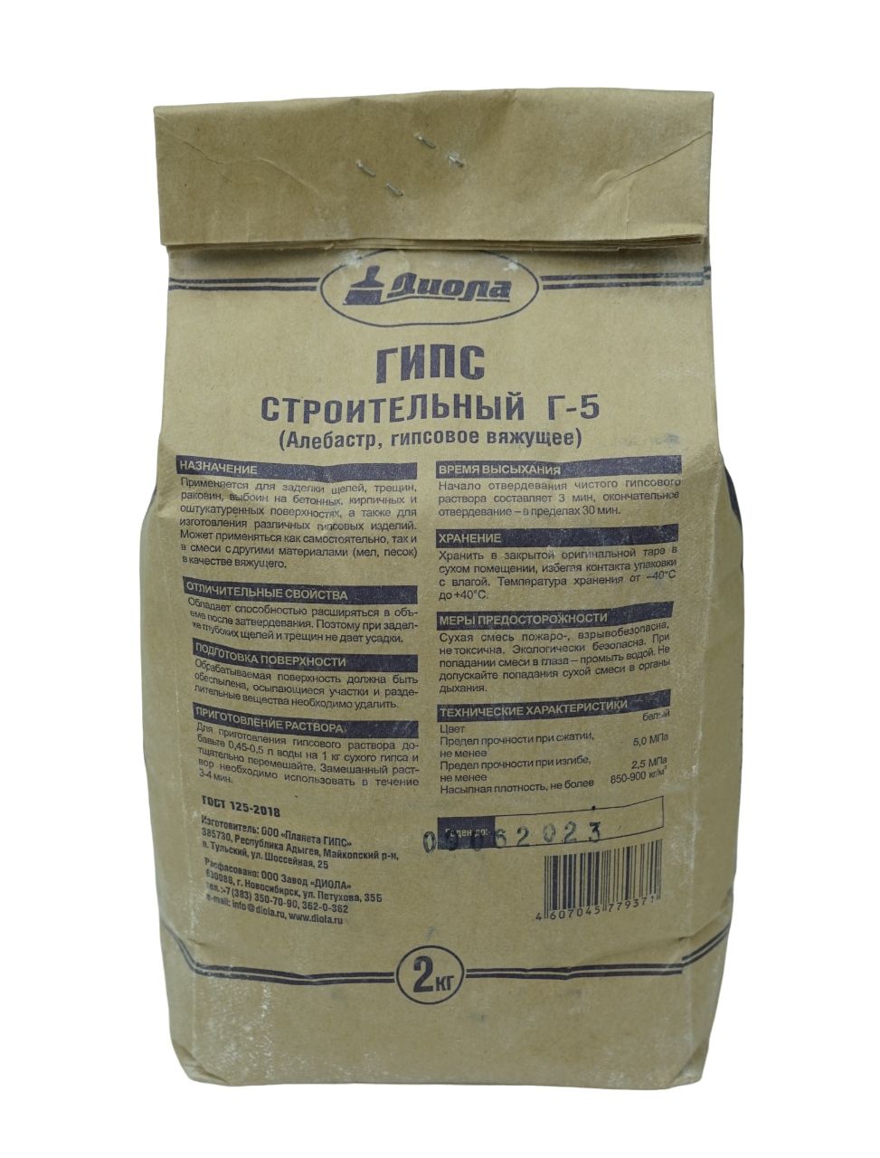 Гипс строительный Г-5 Алебастр (Диола) 2 кг цена - купить в Барнауле, Бийске. Размеры, характеристики, фото в интернет-магазине.