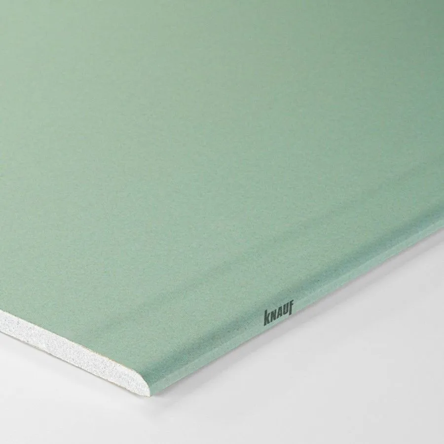 Гипсокартон Кнауф влагостойкий применяются для установки легких межкомнатных перегородок, подвесных потолков, облицовки стен и огнезащиты конструкций в зданиях и помещениях с повышенной влажностью, с обеспечением вытяжной вентиляции и при условии защиты лицевой поверхности, например, гидроизоляцией, водостойкими грунтовками, красками, керамической плиткой.