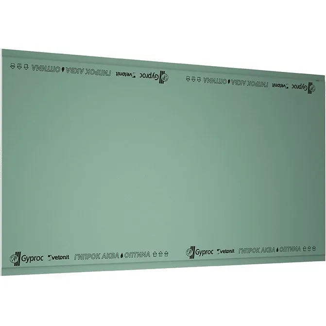 Гипсокартон влагостойкий Gyproc представляет собой универсальный влагостойкий материал, который подходит для монтажа любых конструкций в помещениях с высокой влажностью (санузел, ванная, кухня). Применение специальных добавок делают данный продукт долговечным и устойчивым к грибку.