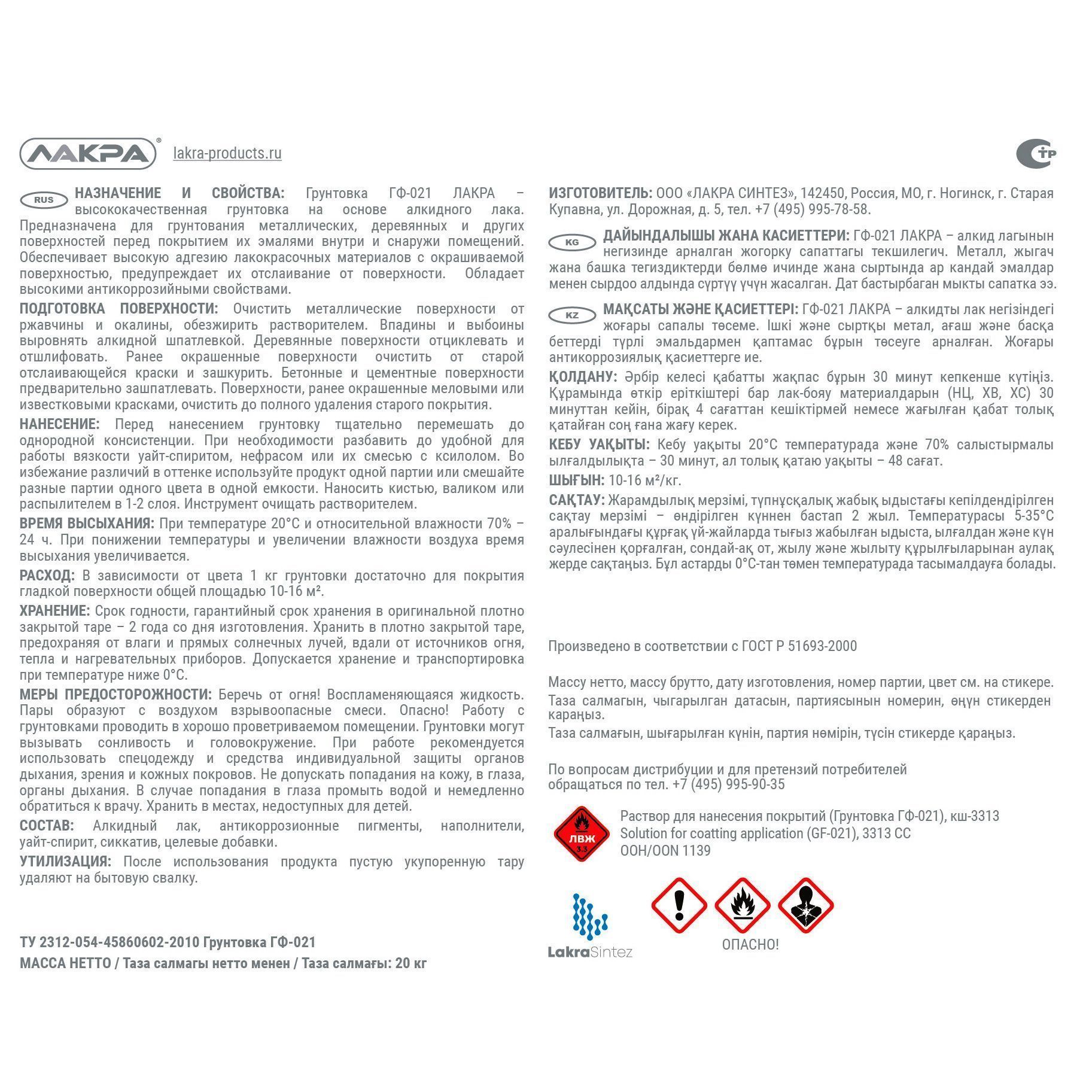 Грунт ГФ-021 Лакра серый 20кг цена - купить в Барнауле, Бийске. Размеры, характеристики, фото в интернет-магазине.